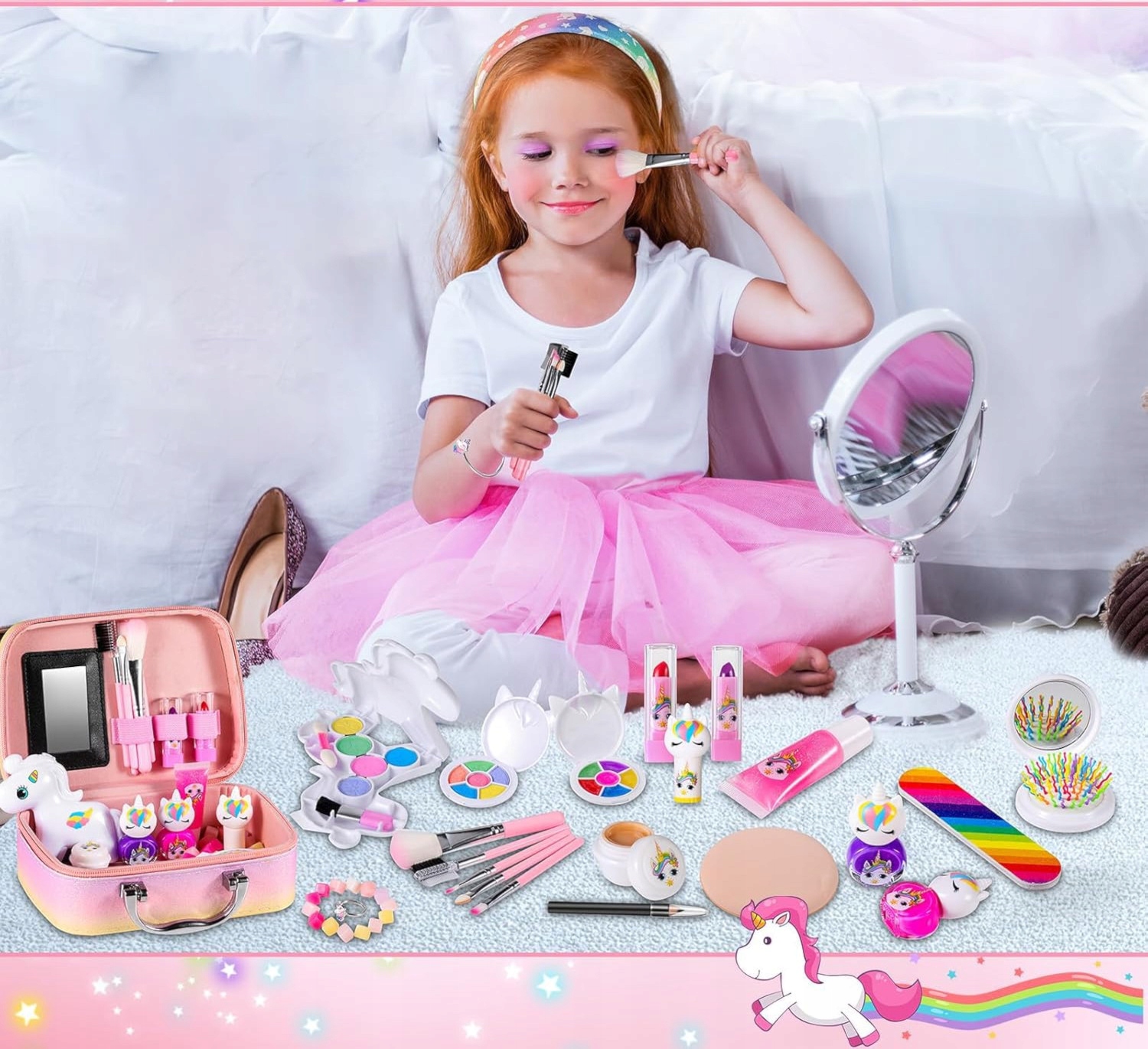 Красивый закрытый ствол содержит все, что вам нужно, молодая леди, чтобы сиять. Содержание набора сертифицировано и безопасно для косметики кожи, которая не вызывает аллергию и легко моется водой.