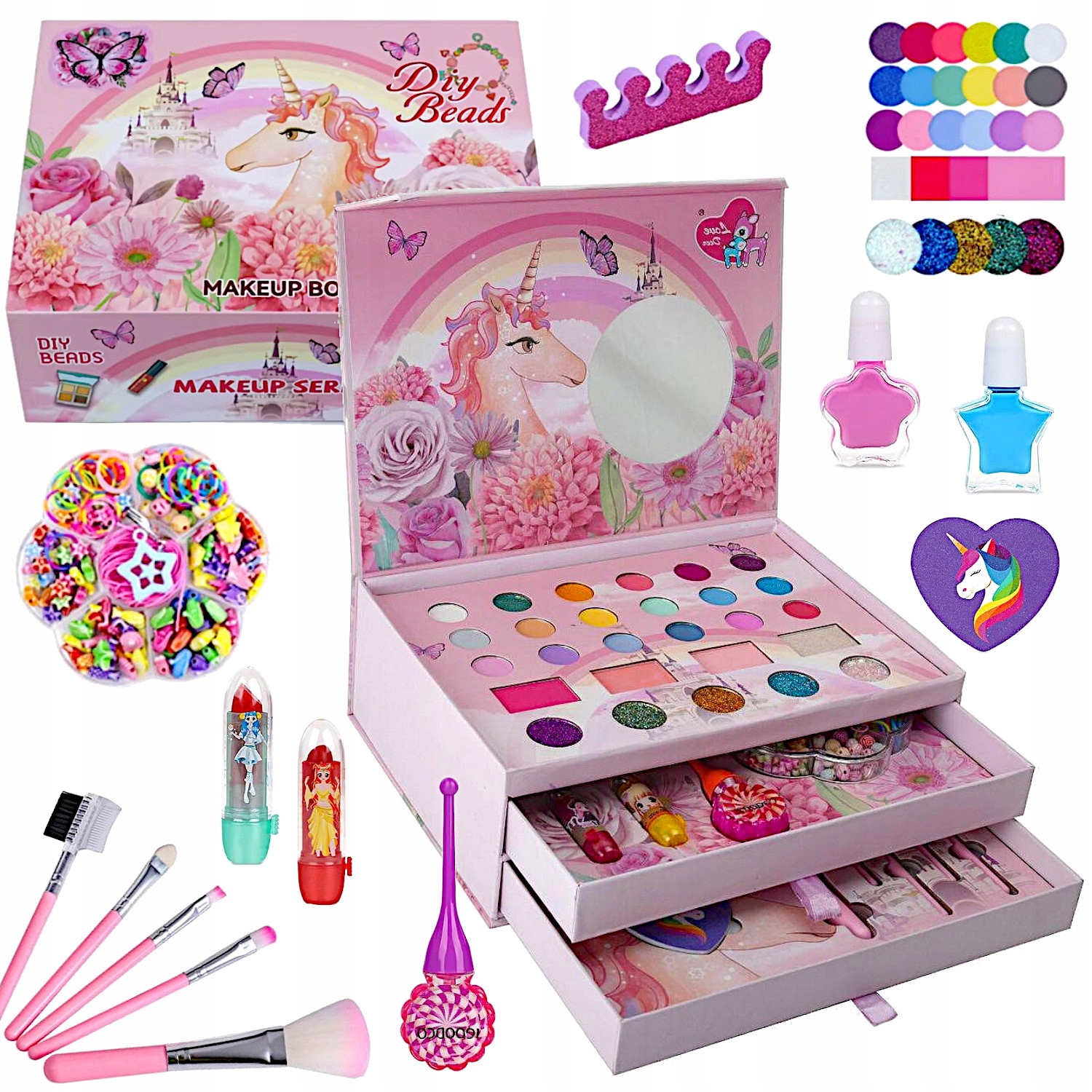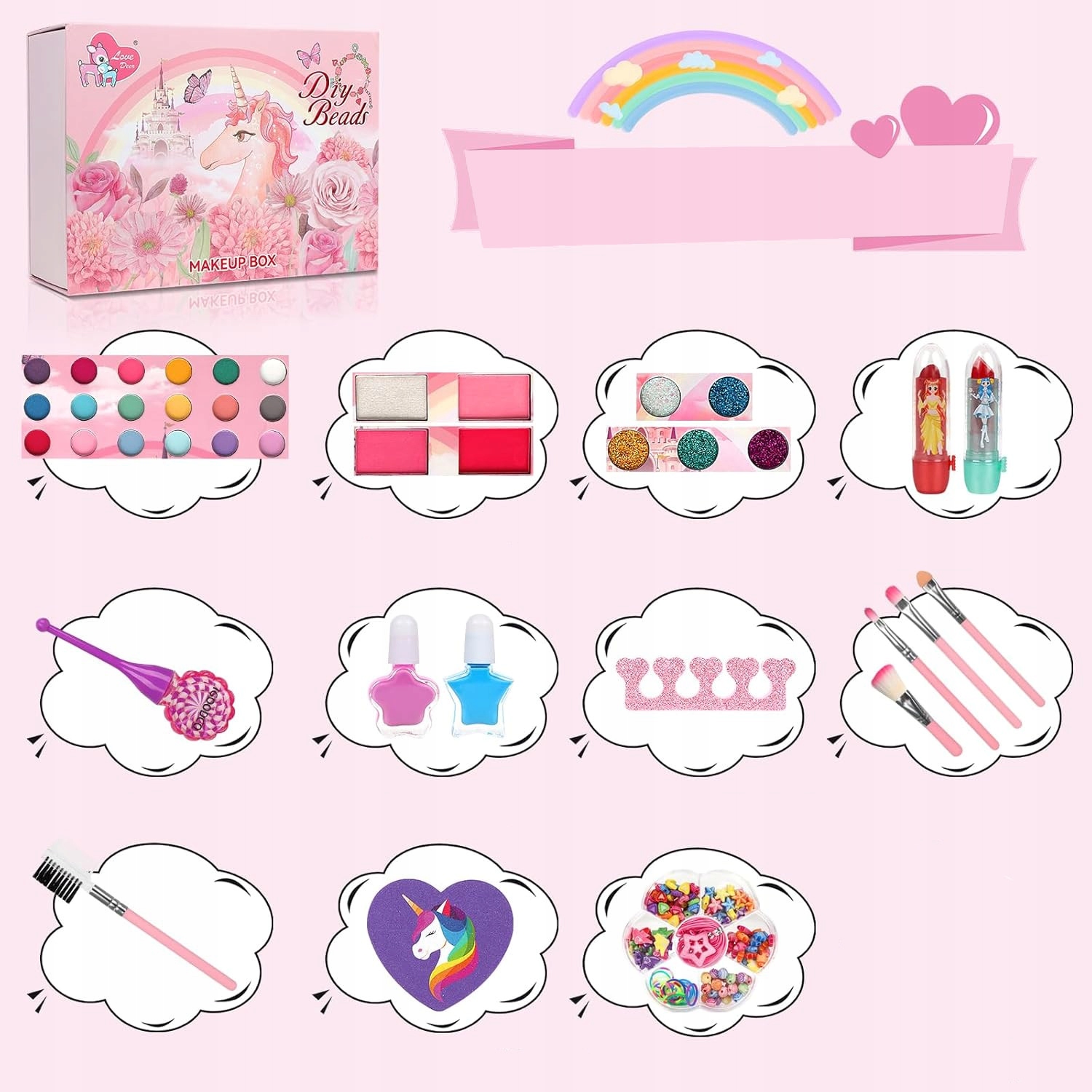Красивый ствол содержит все, что вам нужна молодая леди, чтобы сиять. Содержание набора сертифицировано и безопасно для косметики кожи, которая не вызывает аллергию и легко моется водой.