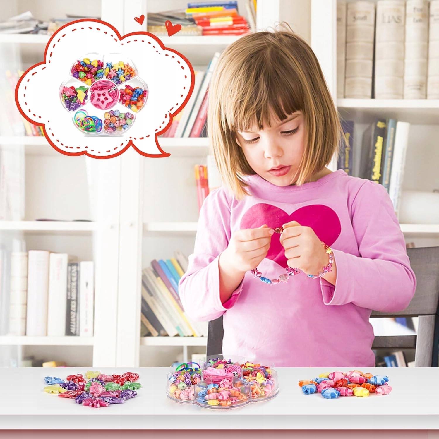 Магия цветов и форм бусин позволит маленькому дизайнеру сделать декоративные уникальные украшения. Девушки будут в восторге от того факта, что уникальные браслеты или ожерели самостоятельно разработали, что выражает свой стиль и завершит стилизацию.