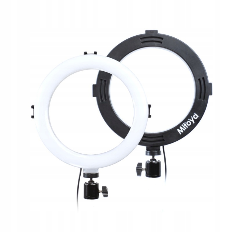 Небольшая портативная кольцевая лампа с внешним диаметром 20 см, с регулировкой мощности и трехуровневой регулировкой цветовой температуры: 3200, 4300 и 5500 К. Имеет 80 светодиодов SMD, обеспечивающих мощную, даже светлый. Несмотря на компактные размеры и низкое энергопотребление 10 Вт, лампа может стать отличным источником света при записи видеоблогов, подкастов, а также при нанесении макияжа дома или выполнении точной ручной работы. Кроме того, в корпусе предусмотрены три крепления для холодного башмака (салазки), позволяющие установить дополнительные аксессуары, например, держатель для телефона или микрофон.