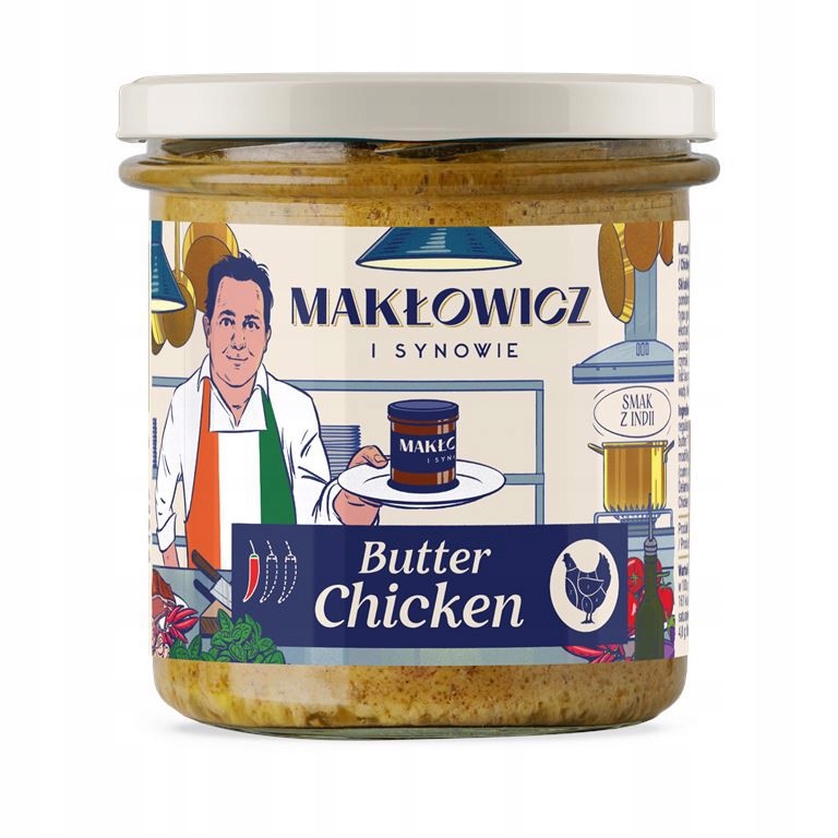 Масло куриное Makłowicz i Synowie 330 г Абсолютная классика индийских вкусов. Подавайте теплым с рисом басмати или блинчиками наан. Курица в остром томатно-масляном соусе. Стерилизованный продукт. Сделано в Польше.