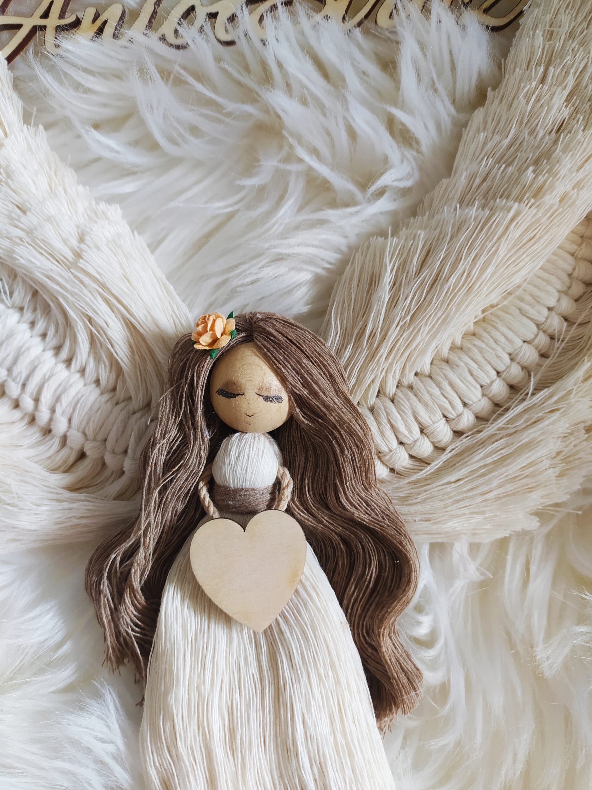 Здравствуйте, предложение о продажах - это ангел, изготовленный вручную с методом Macram на ободе с надписью Angel Guardian.