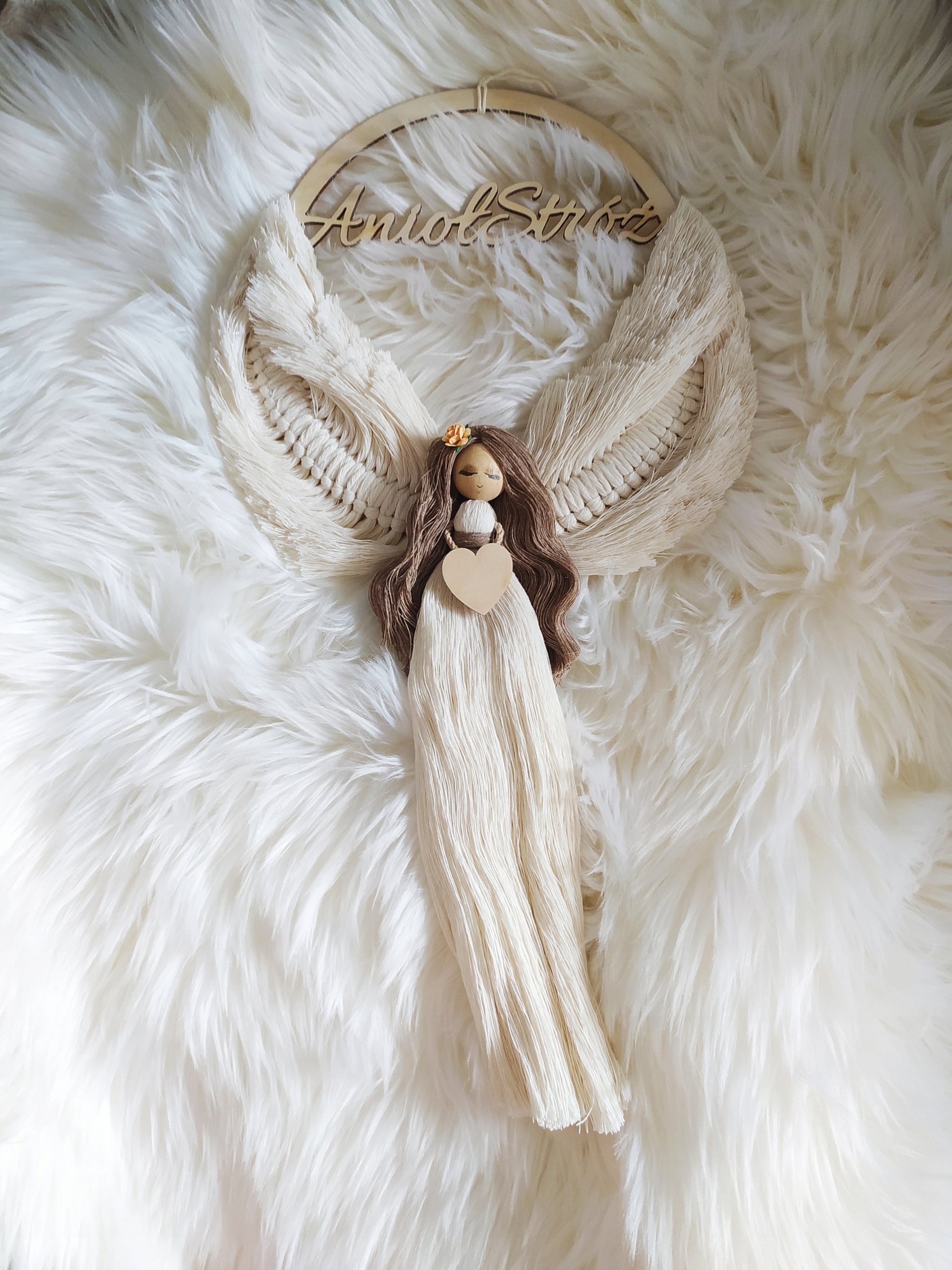 Этот макрам украсит, согревает любой интерьер детской комнаты, это может быть красивым оригинальным подарком для любых случаев. Ангел упакован в обычную транспортную коробку. Если кулон должен быть красиво упакован в коробку с окном, я приглашаю вас на другие мои аукционы, где для дополнительного PLN 15. В сердце, которое удерживает ангел, может быть именем и любой надписью. Если имя ребенка должно быть размещено на ободе, его можно записать в сообщении при покупке. Тень струны может варьироваться в зависимости от партии. Цветок в волосах ангела может варьироваться на фотографии в зависимости от доступности.