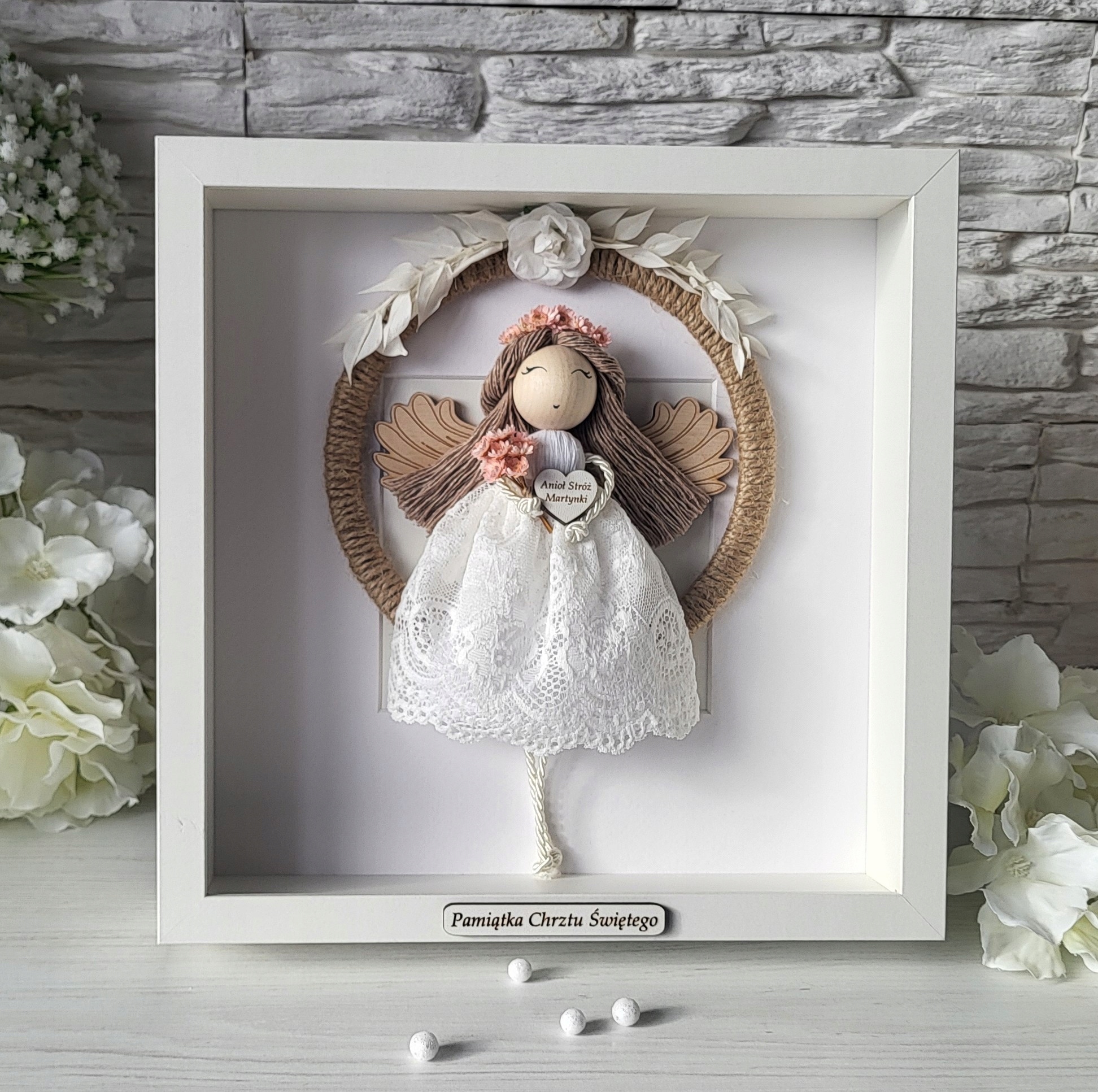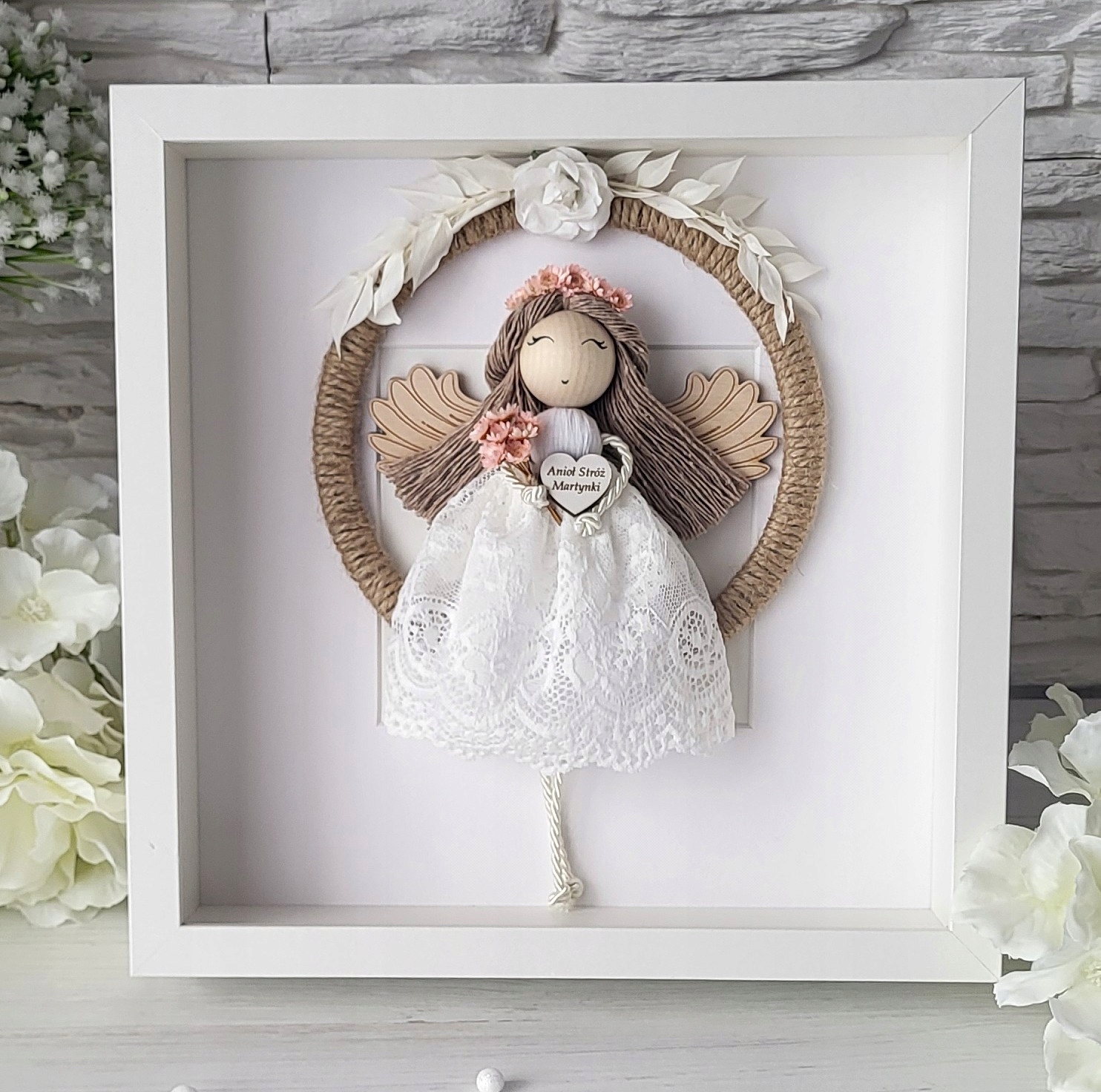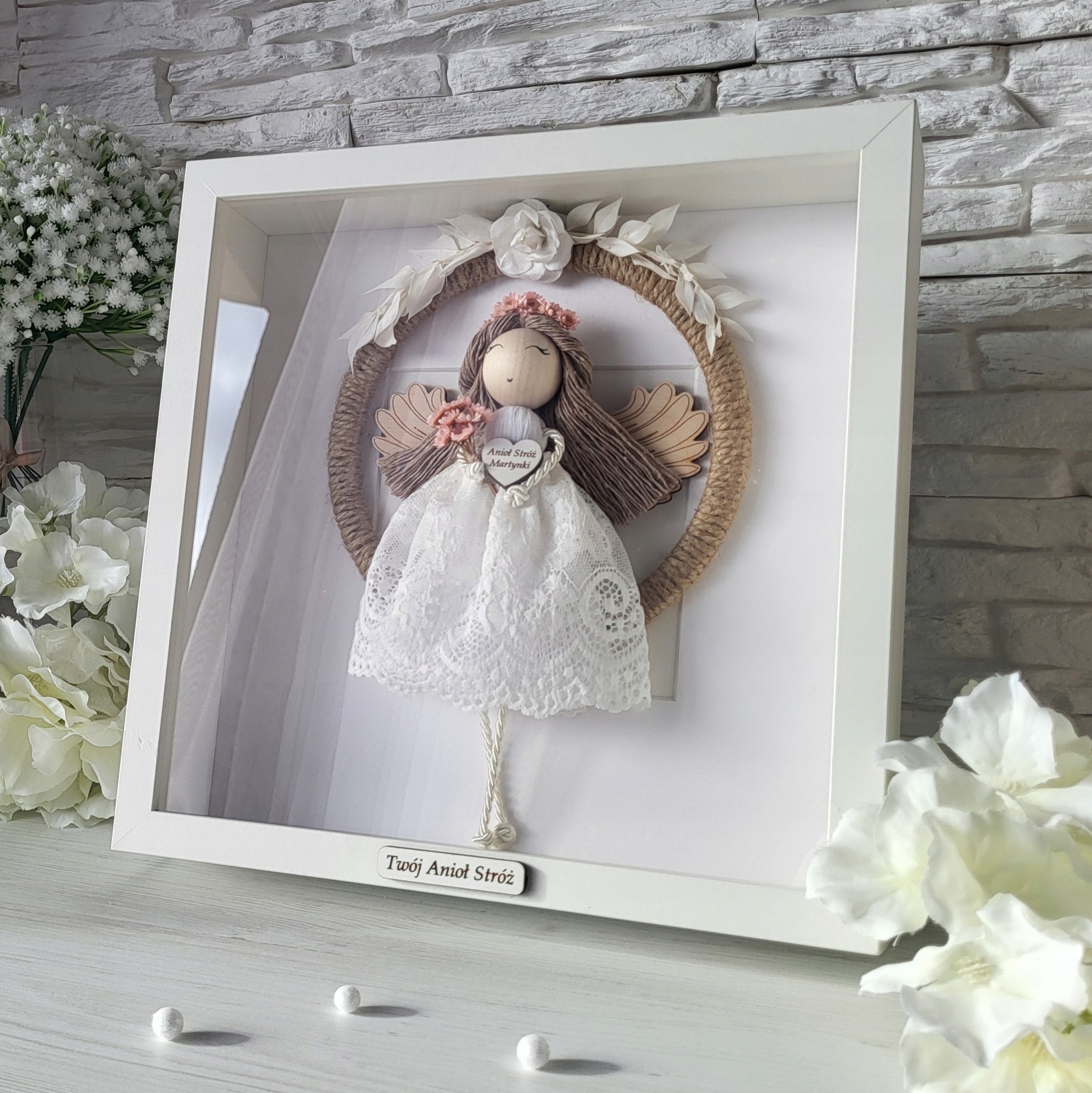 Macrama Angel в 3D -кадре сувенир для крещения Причастие Свадебное день рождения плексиглас