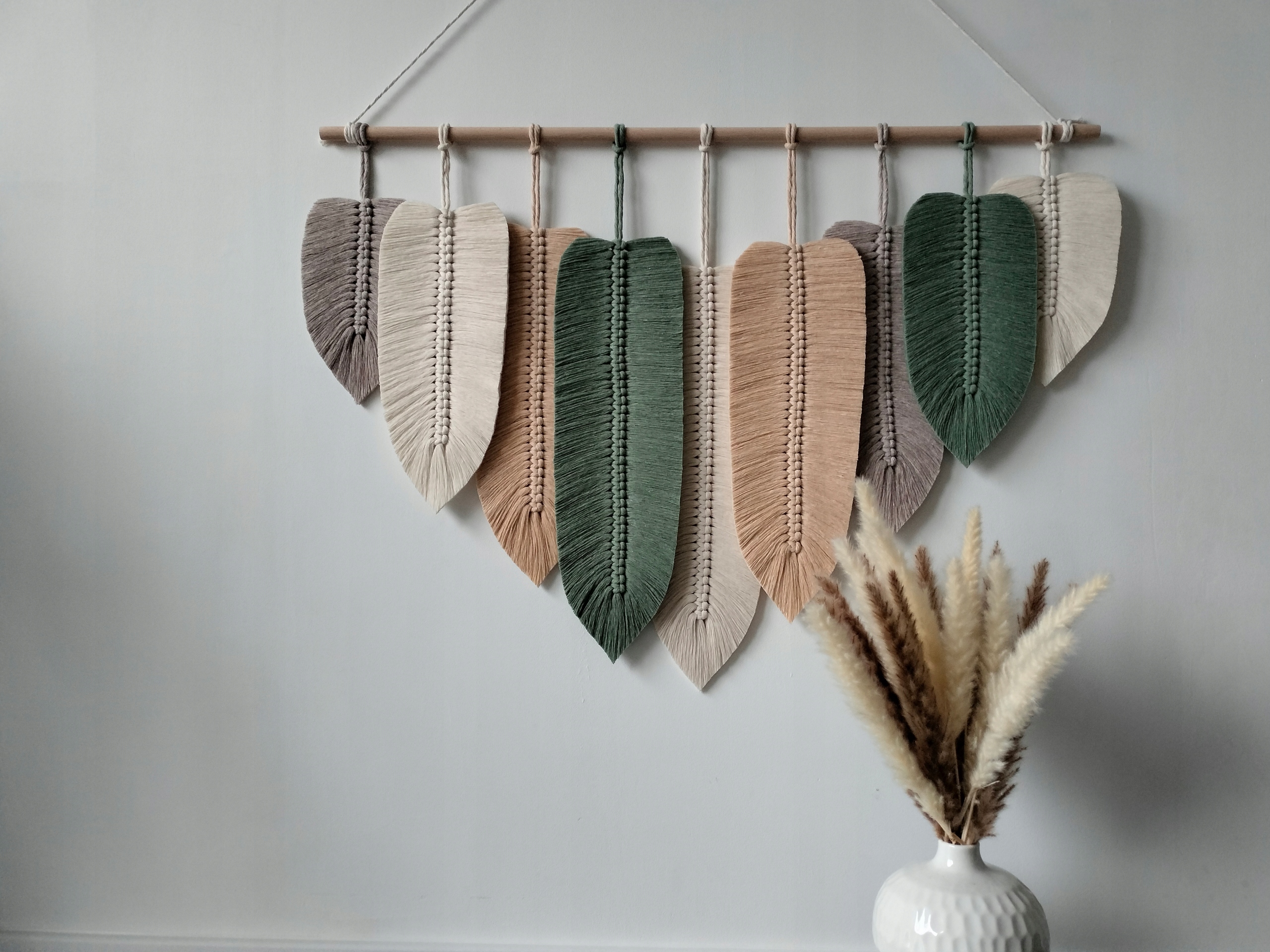 Макрама для стены Большие красочные листья ловца перьев для стены