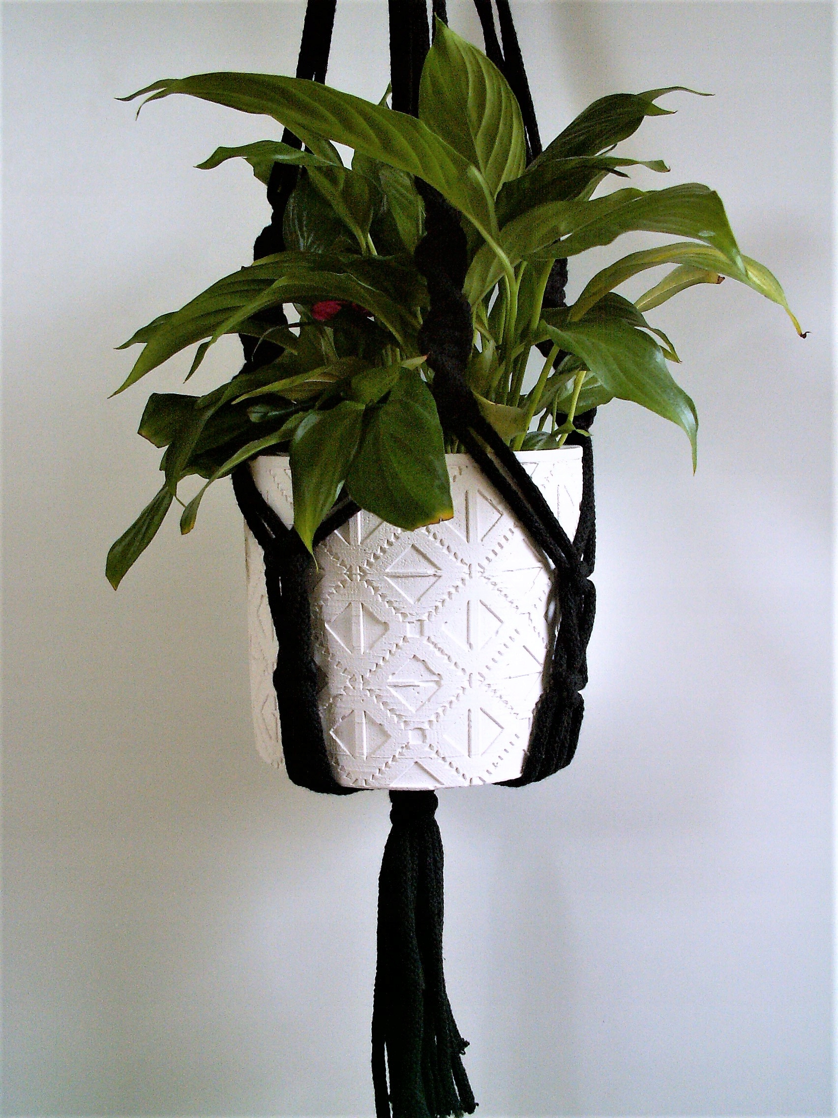 Макраме, клумба, свисающая со шпагата.