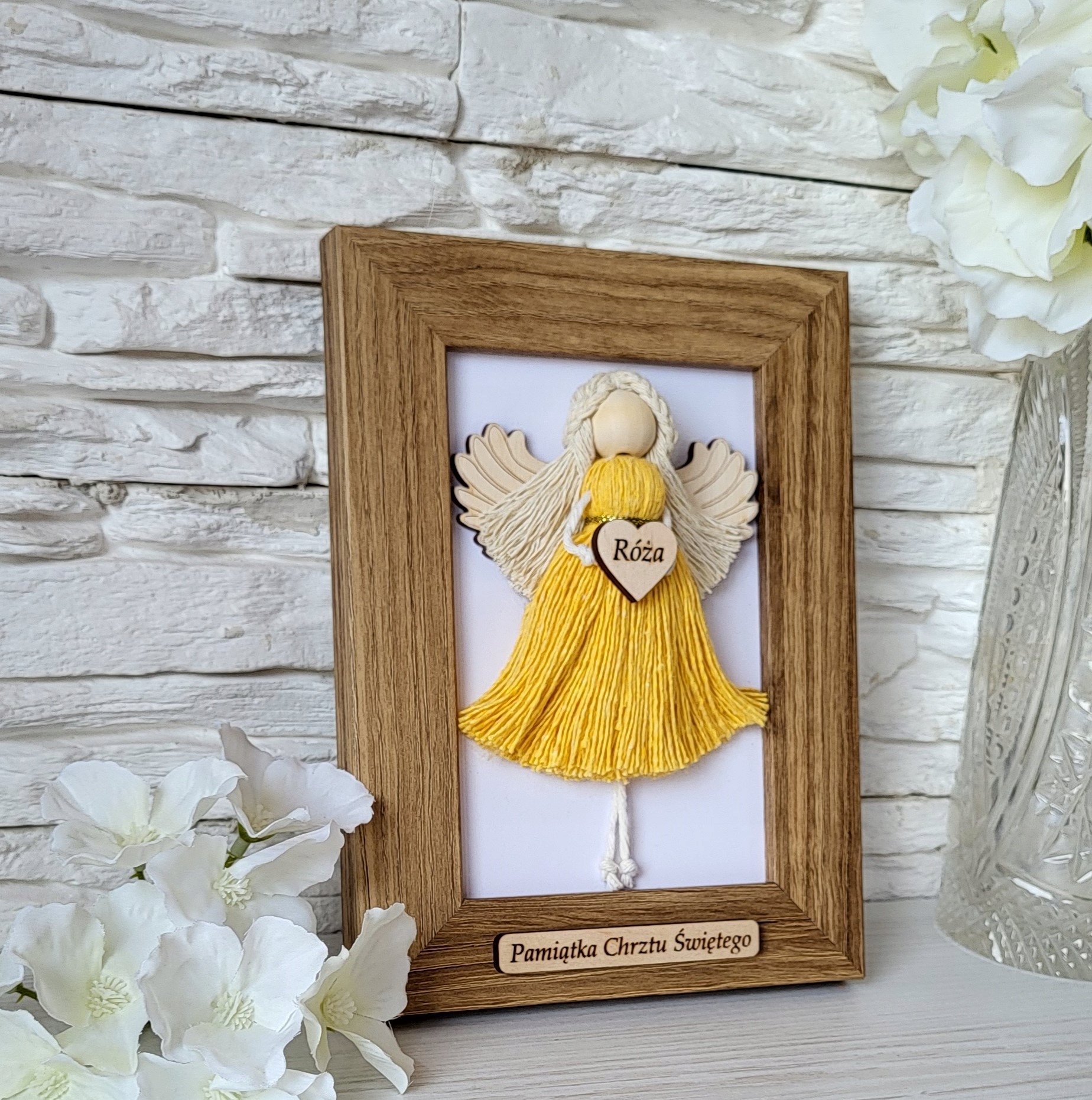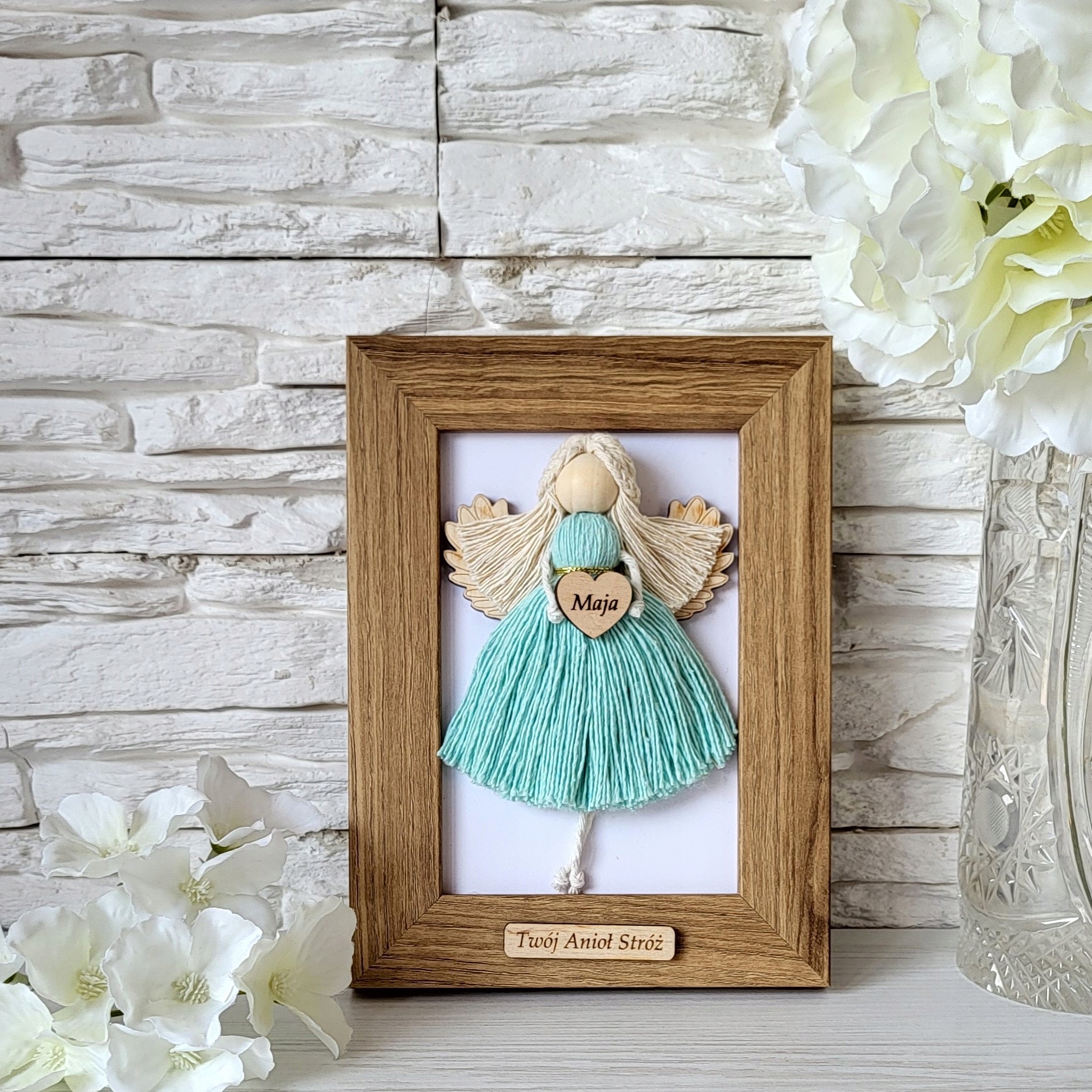 МАКРАМЕ АНГЕЛ В РАМЦІ ПЕРСОНАЛІЗАЦІЯ НА ХРЕЩЕННЯ СУВЕНІРИ НА ДЕНЬ НАРОДЖЕННЯ