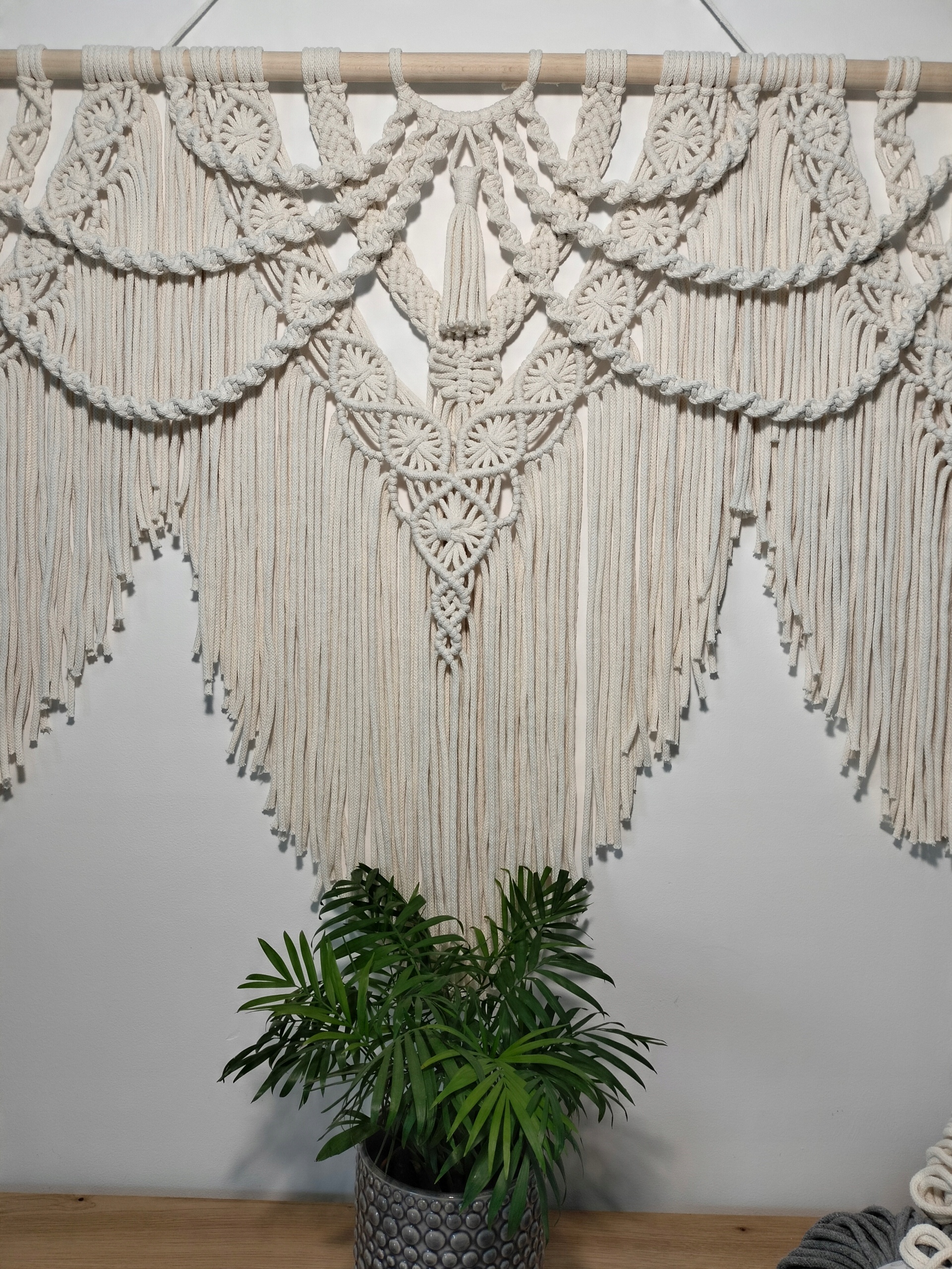 Модное украшение, сделанное вручную из хлопковой струны 5 мм. Подвешен на палке из естественного, легкого букового дерева. Он украсит ваш дом, принесет в него уникальную атмосферу , толстые плетения, струна в качественном качеством и модный цвет, сделайте macrama monster xl идеально В качестве стильного акцента в вашей квартире. Высота без Трампа: ок. Другое по запросу)