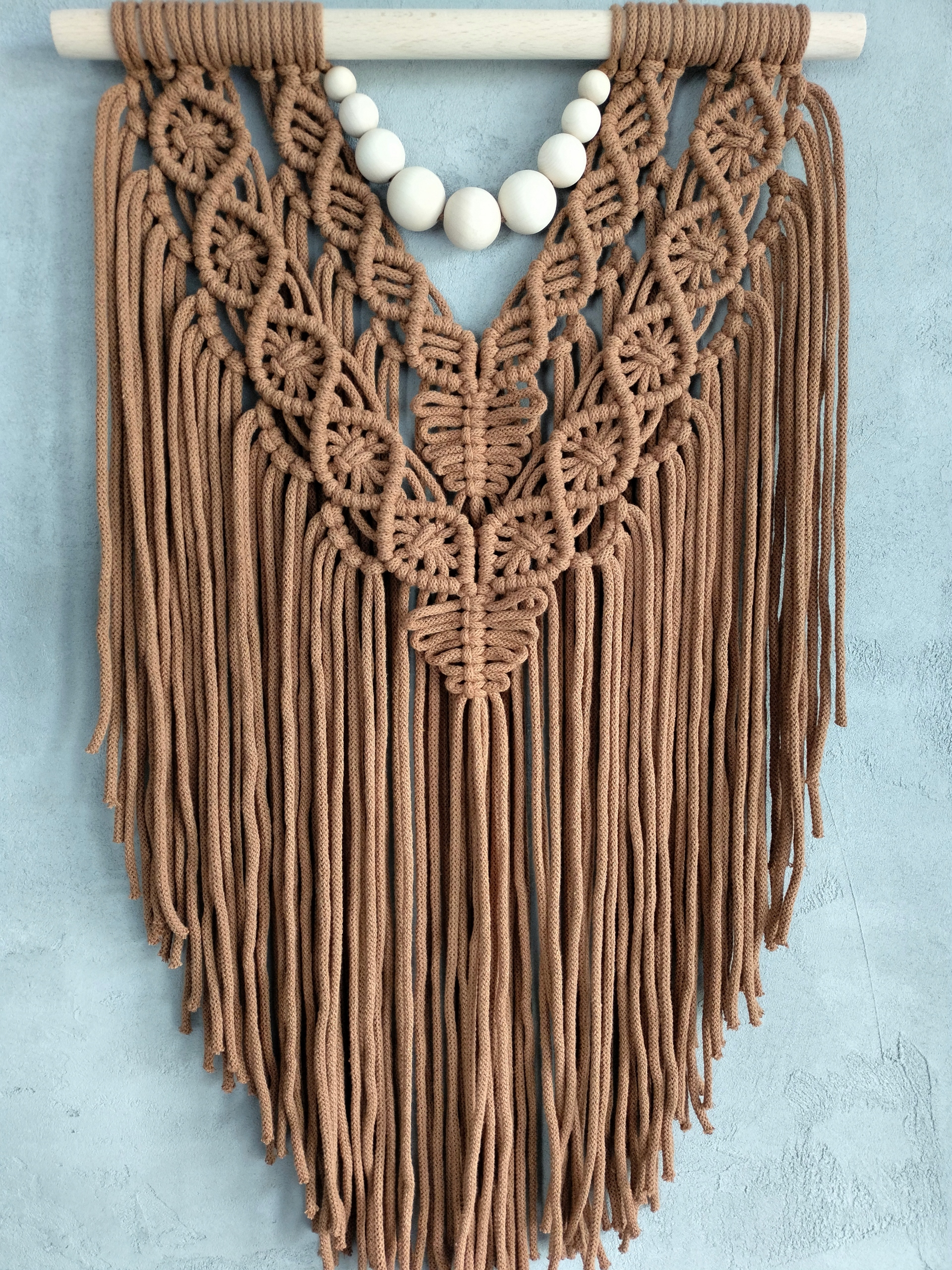 МАКРАМЕ КАРАМЕЛЬ велика бохо прикраса на стіну