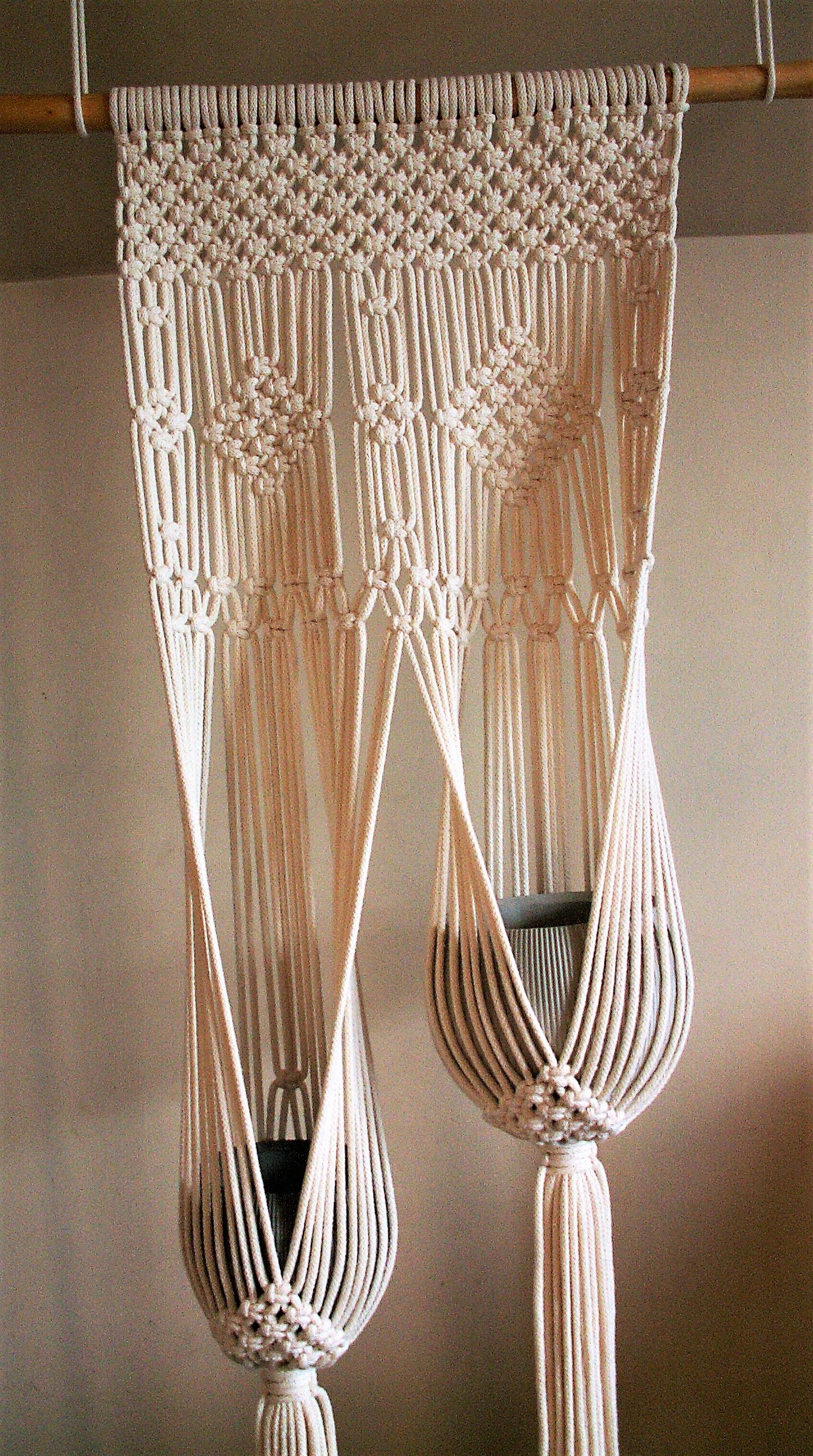 Макраме клумба двойная из шпагата для 2 Горшков