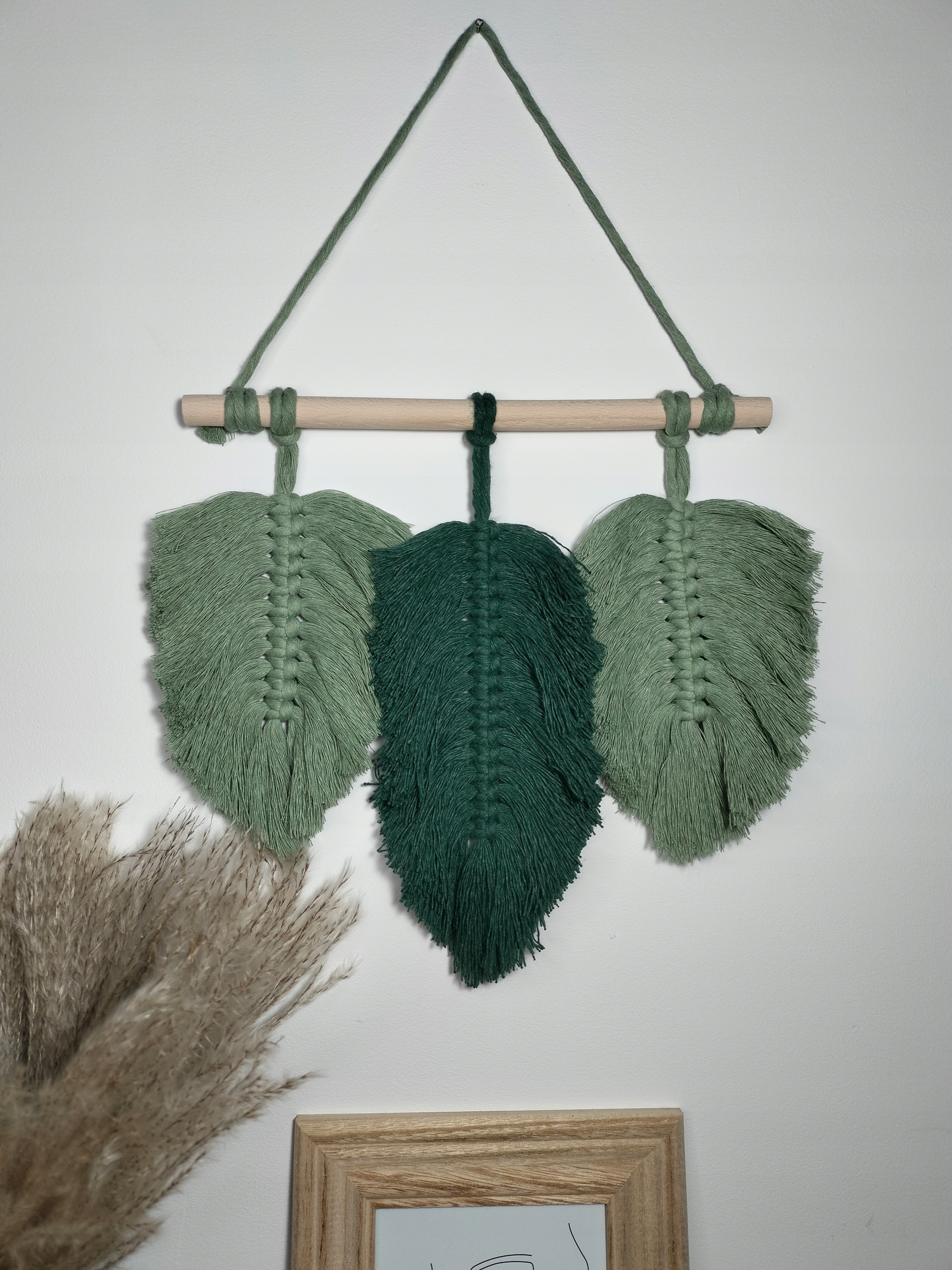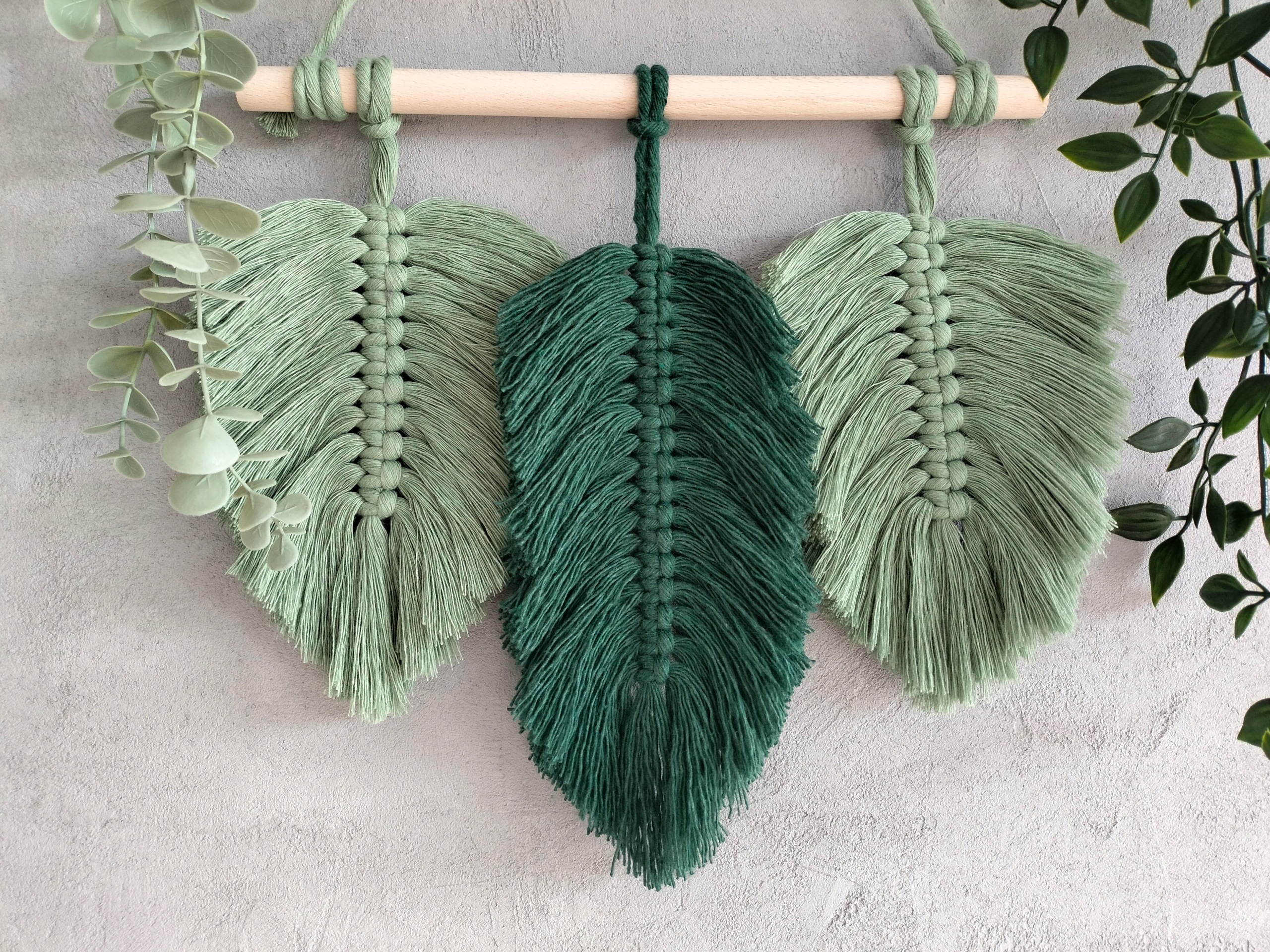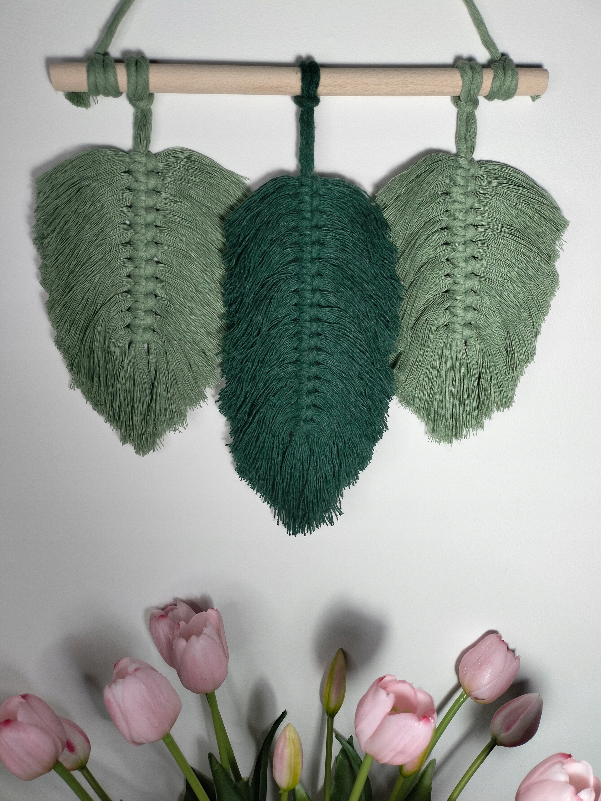 МАКРАМЕ ЛИСТЯ бохо пір'я на стіну 30см зелене