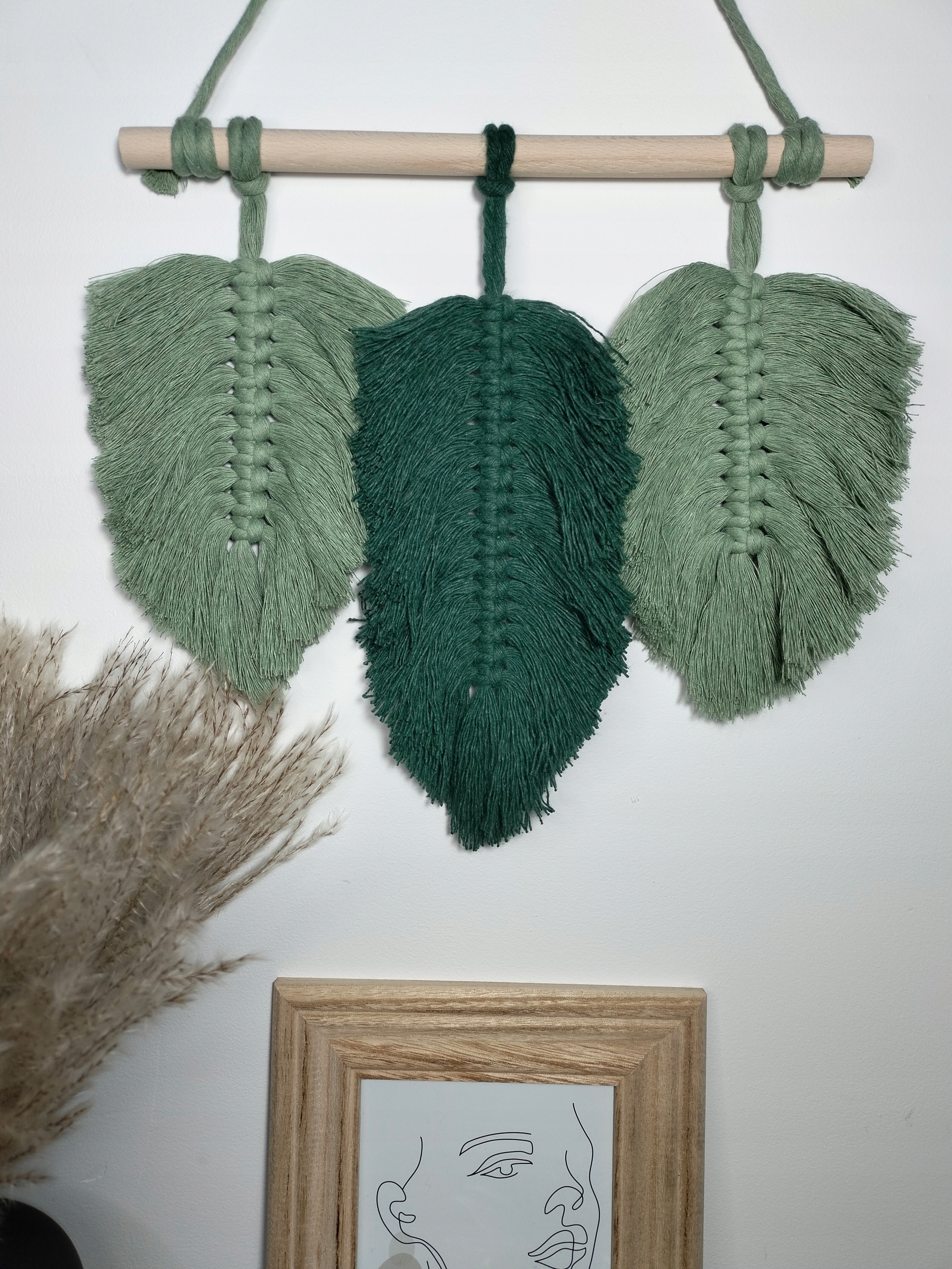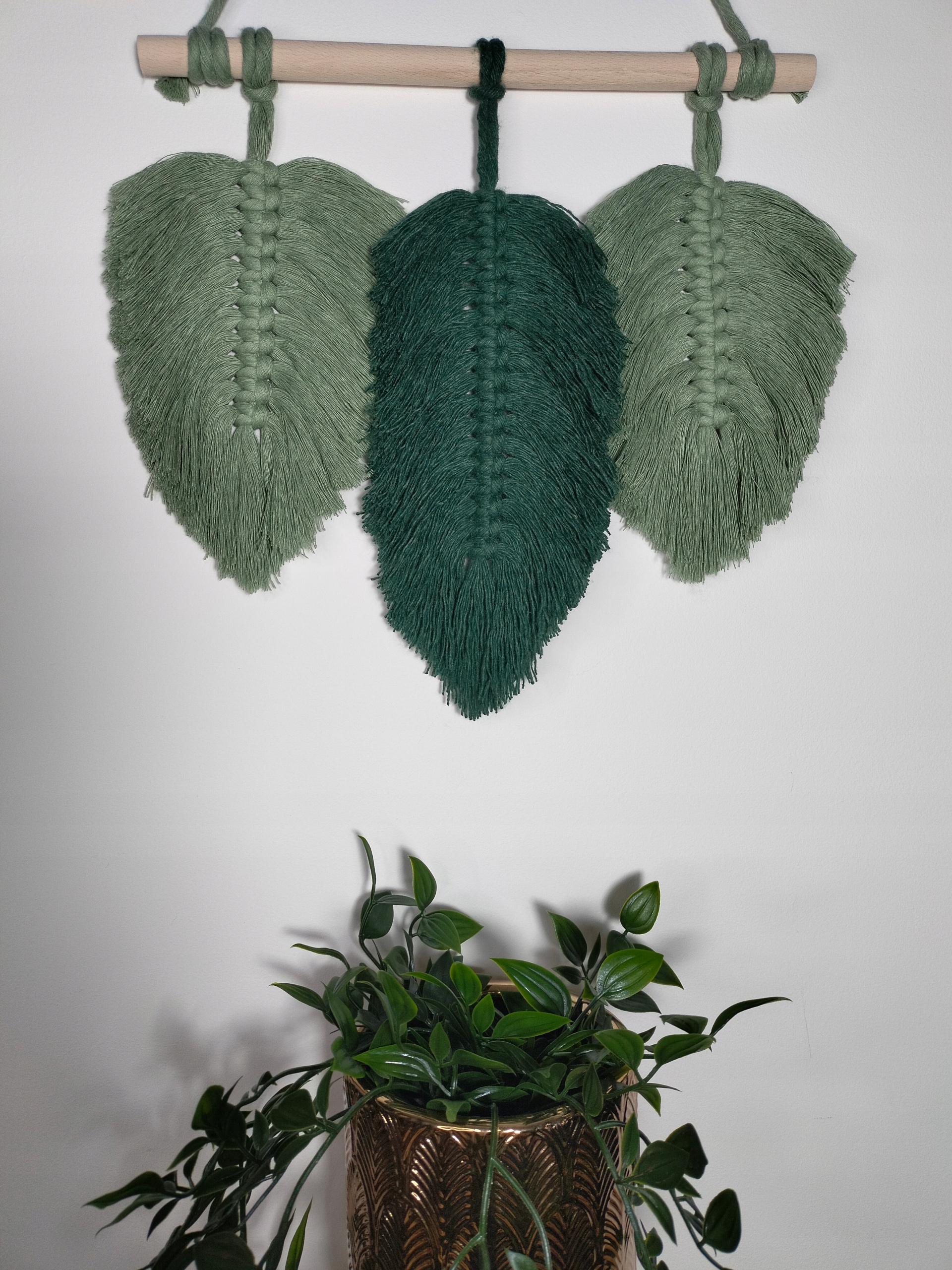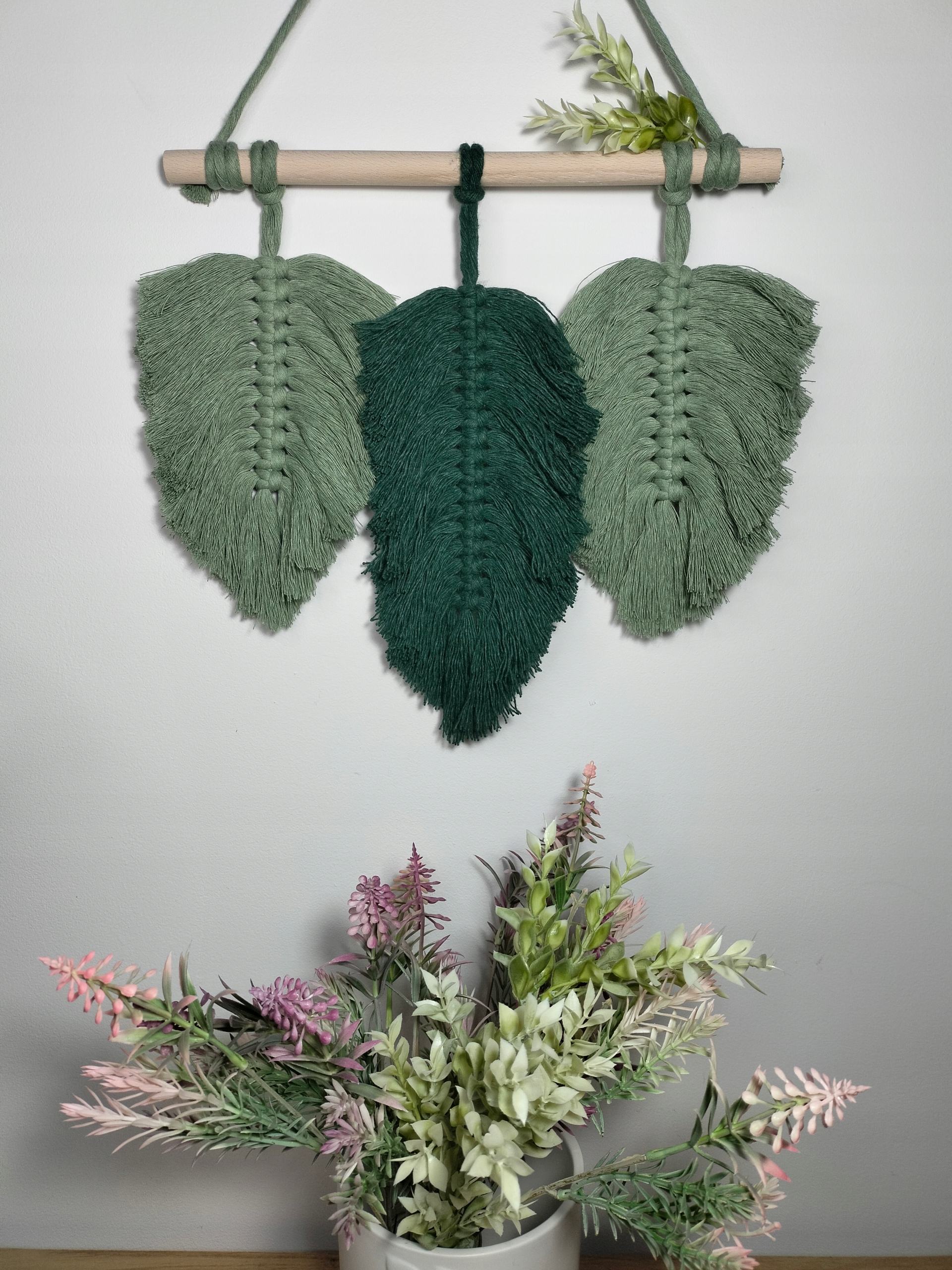 МАКРАМЕ ЛИСТЯ бохо пір'я на стіну 30см зелене