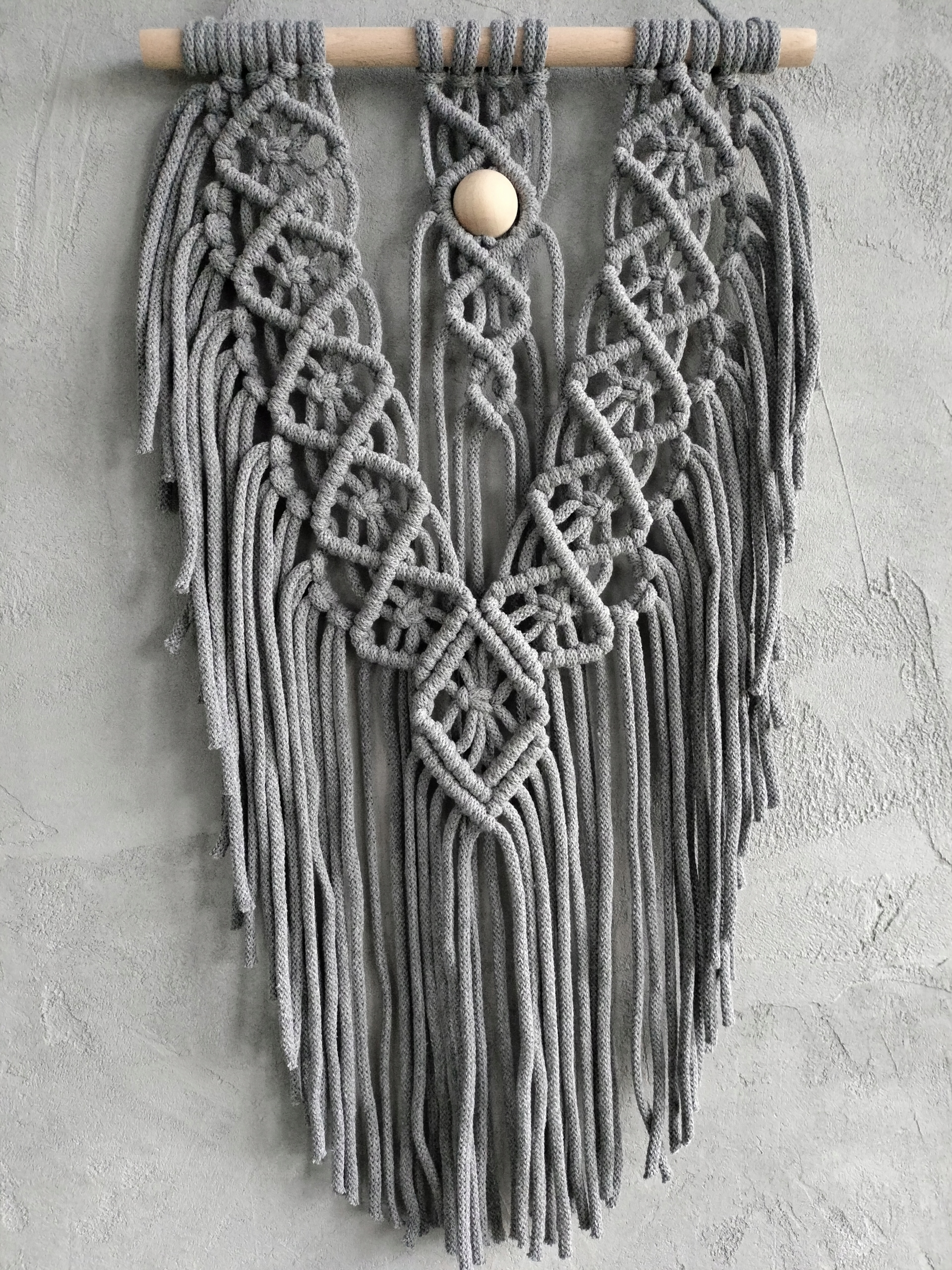 Модное украшение, сделанное вручную из хлопковой струны 5 мм. Подвешен на палке из естественного, легкого букового дерева. Он украсит ваш дом, принесет ему уникальную атмосферу. Идеально как стильный акцент в вашей квартире. CM