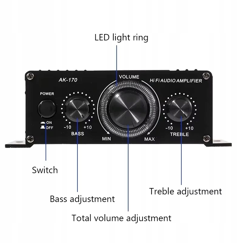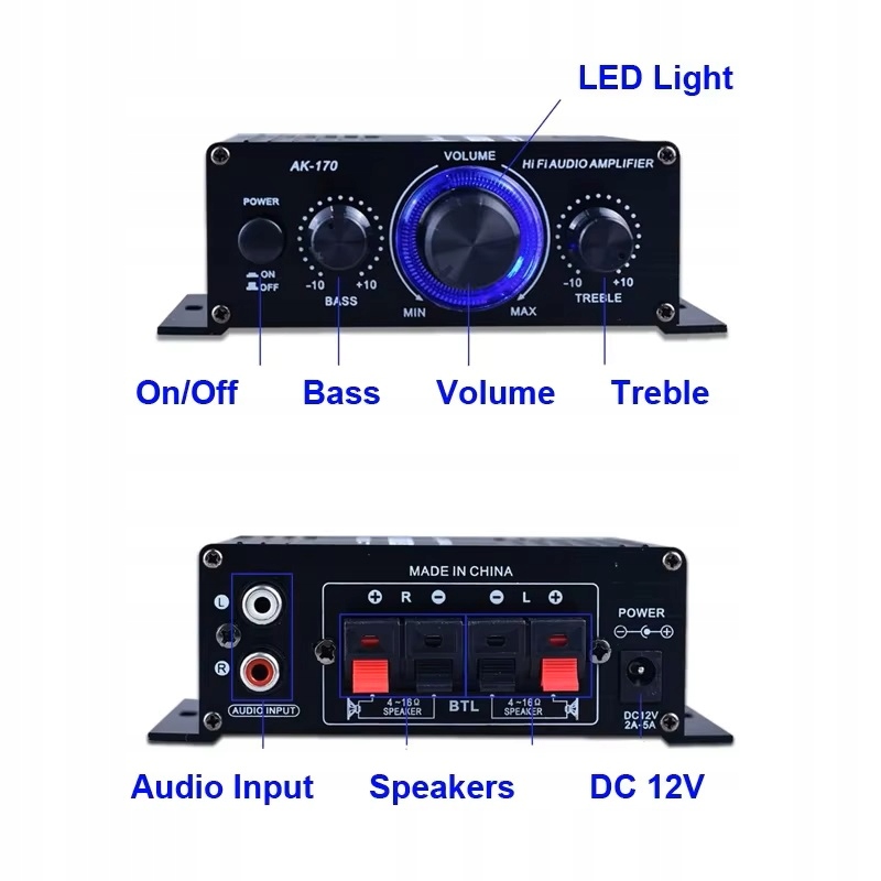Усилитель MAX 400 Вт с регулятором низких и высоких частот, 2 кабеля AUX по 20 Вт