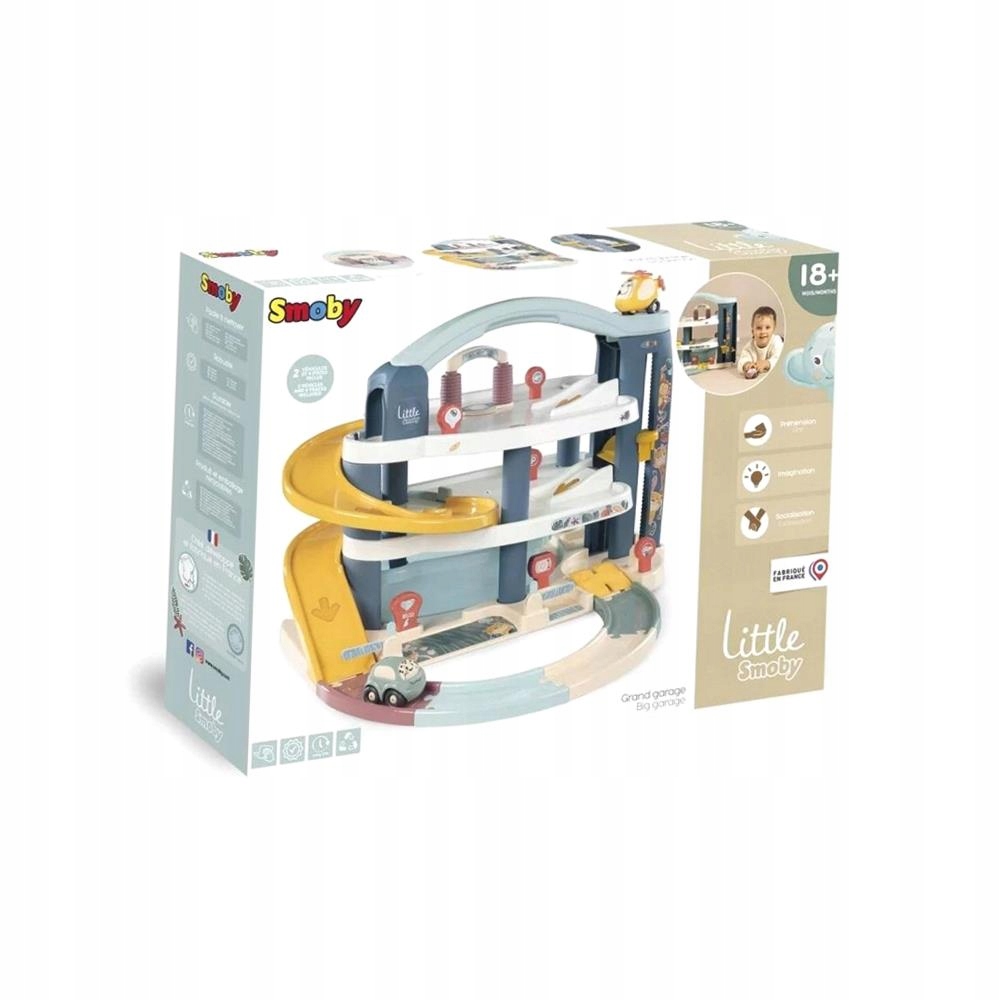 Сверхпрочный трехуровневый гараж с многочисленными достопримечательностями, в том числе: автомойка и лифт. В комплект входит 1 машина и 1 вертолет. Гараж легко переносить благодаря ручке и имеет практичный контейнер для автомобилей. Сделано во Франции.