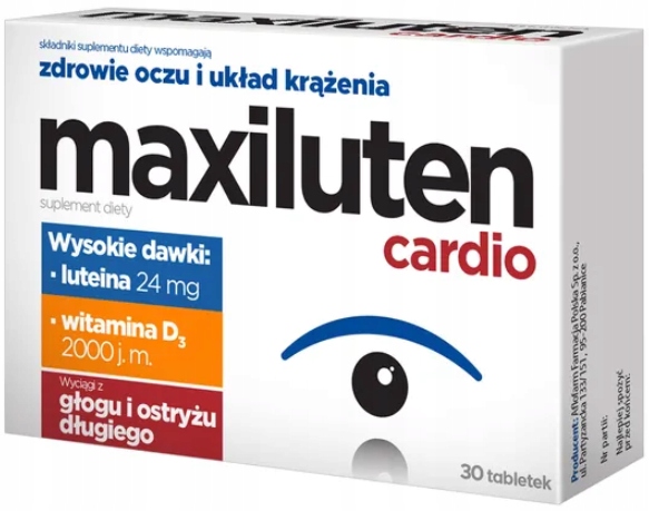 Максилутен кардио — это пищевая добавка, содержащая высокую дозу лютеина, а также зеаксантина, а также витаминов и минералов (бета-каротин как источник витамина А и цинка), которые могут благотворно влияют на зрение.