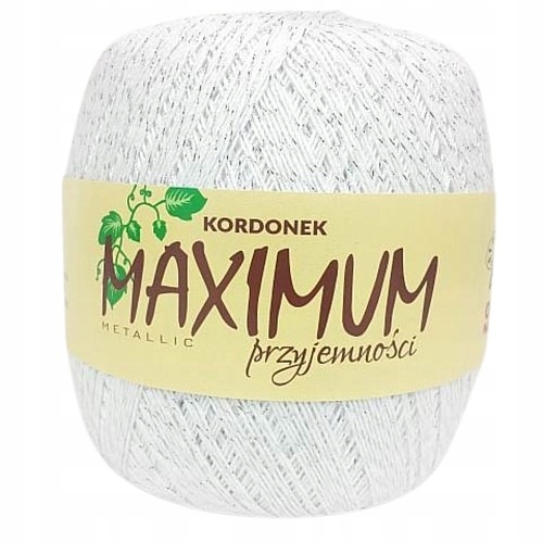 Максимальный металлический шнур из Opus nature - это нить из 10 с мерцающим серебром или золотой нитью. Максимальный металлический шнур является эквивалентом очень известного шнура Maxi Madame Tricote, он имеет одинаковые параметры и внешний вид нити. Из -за твердого поворота и высокого качества он идеально подходит для салфеток, ступеней, скатерти, ревности и других домашних украшений. Я также рекомендую это в Crochet Summer Olde: Tops, Bloyes, нежные платья или открытые удары для лета. Красиво блестящая нить, обертывающая хлопчатобумажную нить, делает этот Кордон очень уникальным. Этот шнур идеально подходит для растяжения готовой работы с высокими каблуками (блоком), не беспокоясь о том, что вы будете перерывом. Я идеально подходит для жесткости и крахмала. Его преимущество также - привлекательная низкая цена.