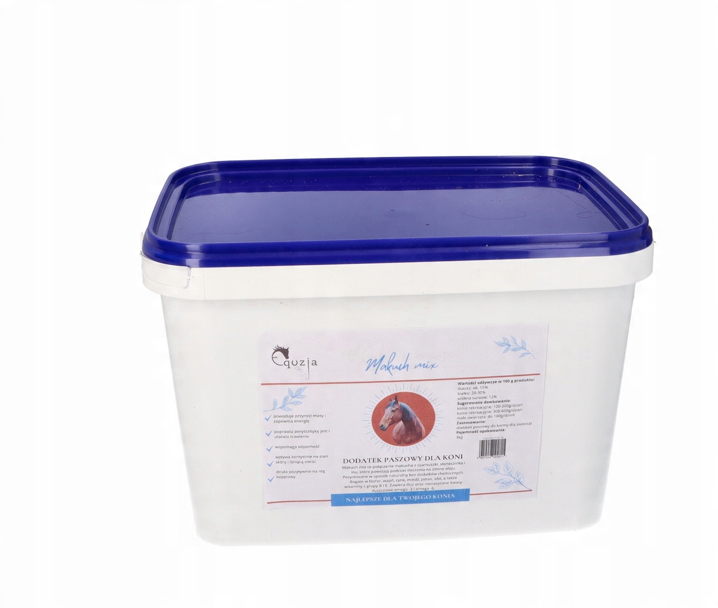 Макуч микссмесь жмыха черного тмина, подсолнечника и семян льна. Это отличная кормовая добавка для спортивных, племенных и прогулочных лошадей, а также птицы и свиней. Произведено в Польше методом холодного отжима масла. Получено естественным путем без химических добавок.