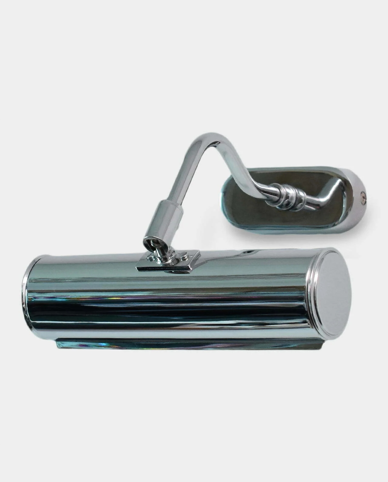 Классический галерейный светильник для освещения картин прекрасно подчеркнет и подчеркнет их в любом интерьере. Изготовлен из хромированной латуни. Настенный светильник имеет подвижный абажур и одну световую точку. Идеально подходит для освещения вертикальных картин или небольших горизонтальных работ. Придайте своему дому новый, неповторимый стиль и заставьте всех восхищаться этой прекрасной деталью декора! Идеально подходит для дома, офиса, гостиницы, ресторана или галереи!