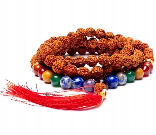 Семь чакр — это центры нашего тела, через которые течет энергия. Каждая серия бусин представляет одну из семи чакр и поможет выровнять и нормализовать поток энергии. Бусина Рудракша помогает нести ауру уверенности в себе в любых ситуациях, снимает нервозность и стресс, а также депрессию. Помогает развить сильную духовную веру, глубокое чувство индивидуальности и высокую самооценку.