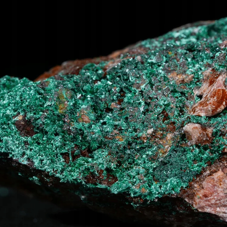 Уникальный, сырой малахит из Марокко - минерал с интенсивным, зеленым цветом и интересной, естественной структурой. Его характерная окраска и многослойная структура заставляет его выглядеть чрезвычайно декоративно, привлекая внимание как коллекционеров, так и любителей минералов.