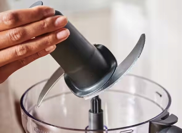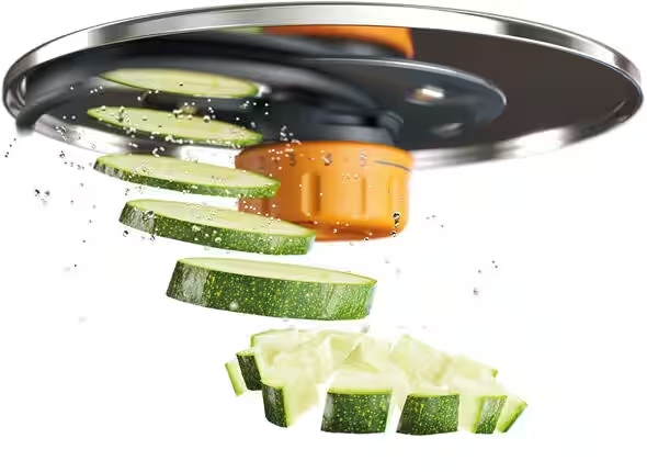 - В комплект входит легко моющаяся, небьющаяся и пригодная для мытья в посудомоечной машине чаша Tritan™, а также режущее лезвие и набор дисков — в зависимости от того, хотите ли вы натереть, нарезать, шинковать или измельчить ингредиенты.