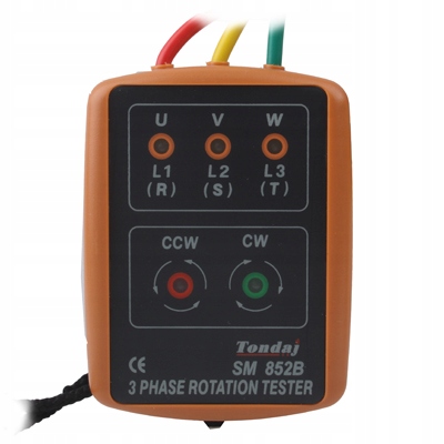 - Устройство с помощью звукового сигнала и светодиодов, установленных спереди, информирует пользователя о направлении вращения и наличии фаз .