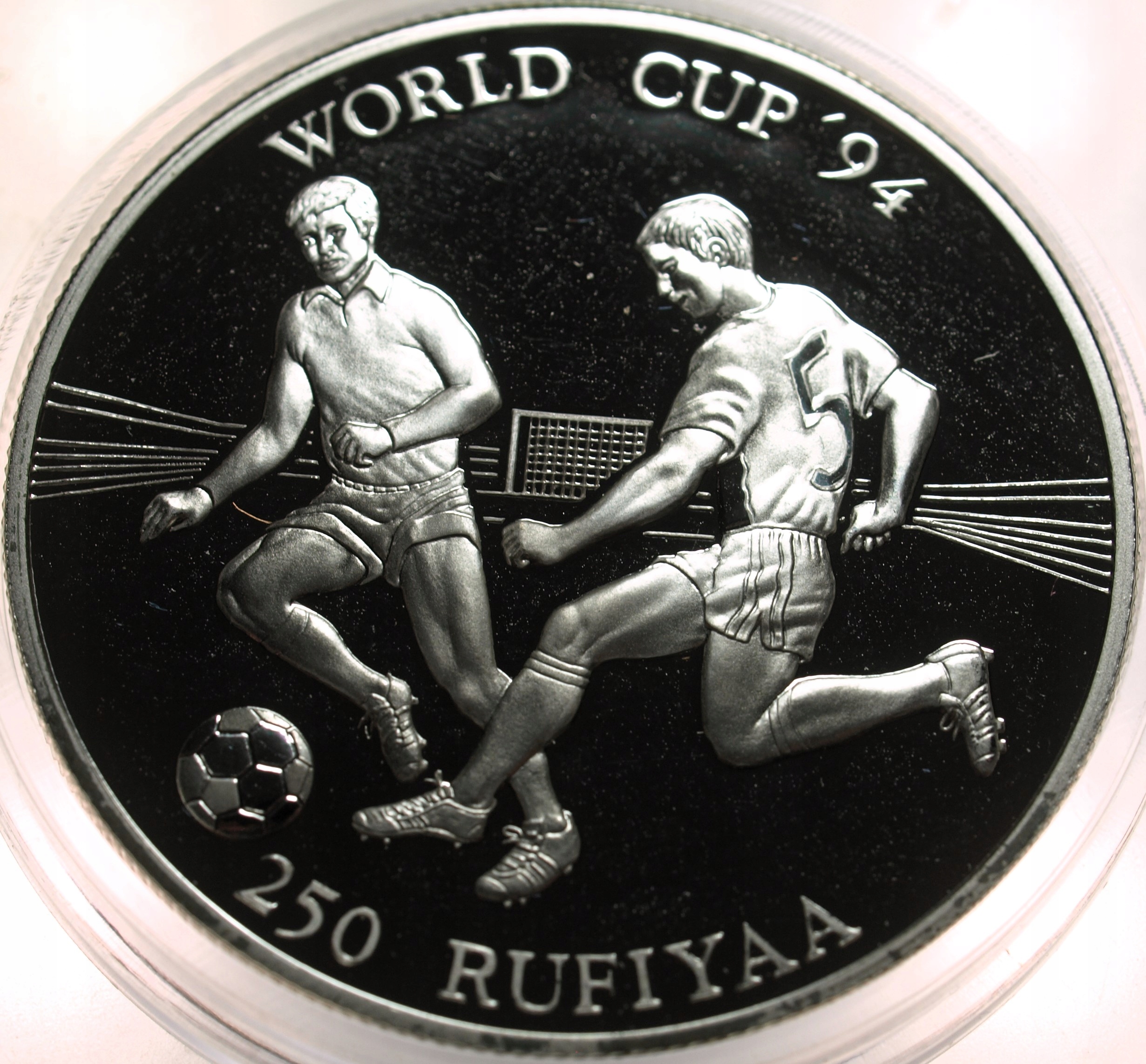Maldives 250 Rufiya Rupii 1993 Чемпионат мира по футболу ФИФА США 1994 г. Серебро. Оригинал Проверьте другие аукционы - Соберите редкие значения с Numismrato!
