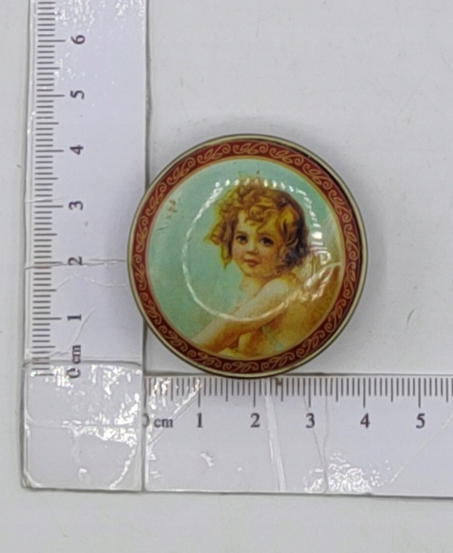 маленький контейнер АНГЕЛ размером 4,4 см с красивыми глазками - на обратной стороне контейнера видно лицо - очень интересная вещь!