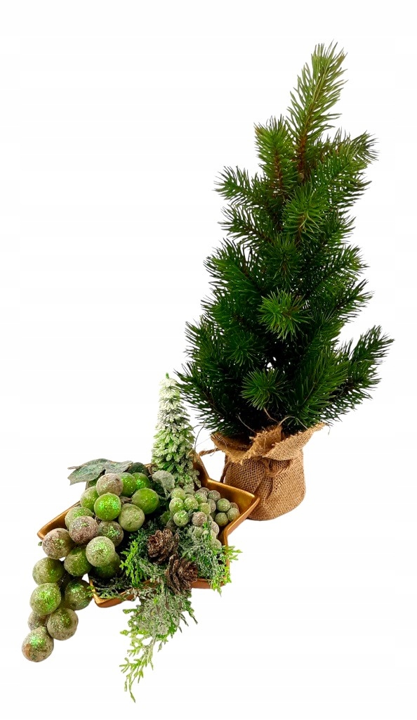 МАЛЕНЬКА, ЗЕЛЕНА ЯЛИНКА В ДЖУТОВОМУ МІШКУ / ГАРНЕ ДЕКОРАЦІЯ