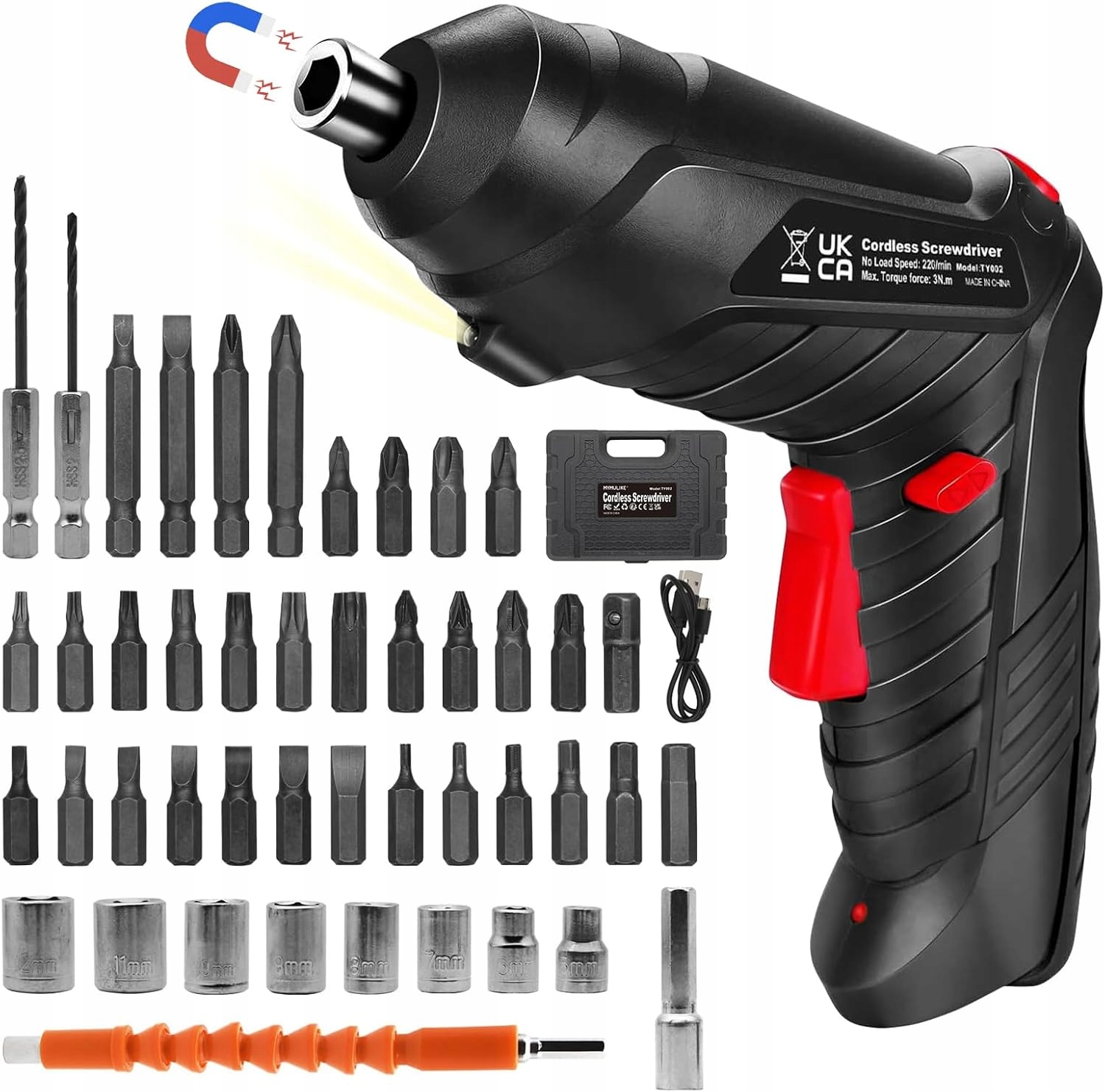 ✅ ✅【МНОГОЧИСЛЕННЫЕ АКСЕССУАРЫ】 47 аксессуаров, включая различные сверла, подходящие практически для всех типов шурупов. Его можно использовать не только как отвертку, но и прикрепить к электродрели. Угол можно повернуть на 90 градусов, а винты можно затягивать в ограниченном пространстве.