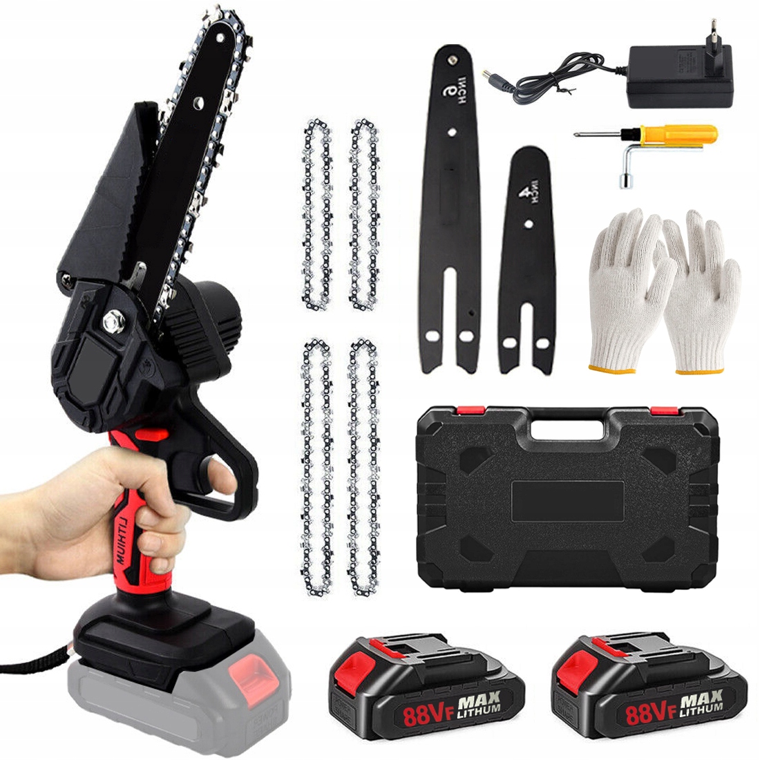 МАЛЕНЬКА ЕЛЕКТРИЧНА АКУМУЛЯТОРНА ПИЛА 6 ДЮЙМОВ + 2 БАТАРЕЇ + 4 КОМПЛЕКТ ЛАНЦЮГА