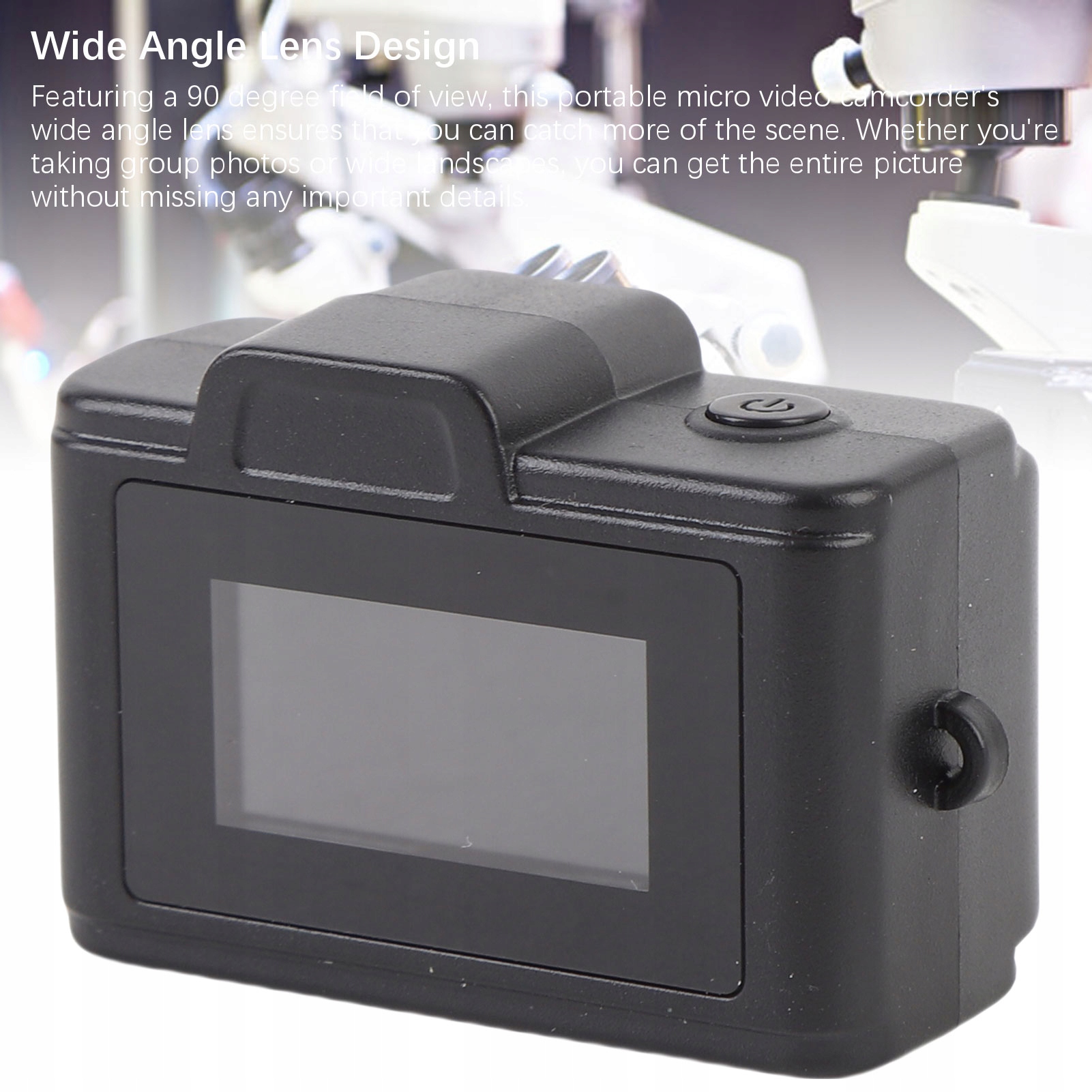2. Широкоугольный объектив: широкоугольный объектив этой портативной микровидеокамеры с углом обзора 90 градусов позволяет захватывать большую часть сцены. Делаете ли вы групповые фотографии или панорамные пейзажи, вы можете получить изображение целиком, не упустив ни одной важной детали.