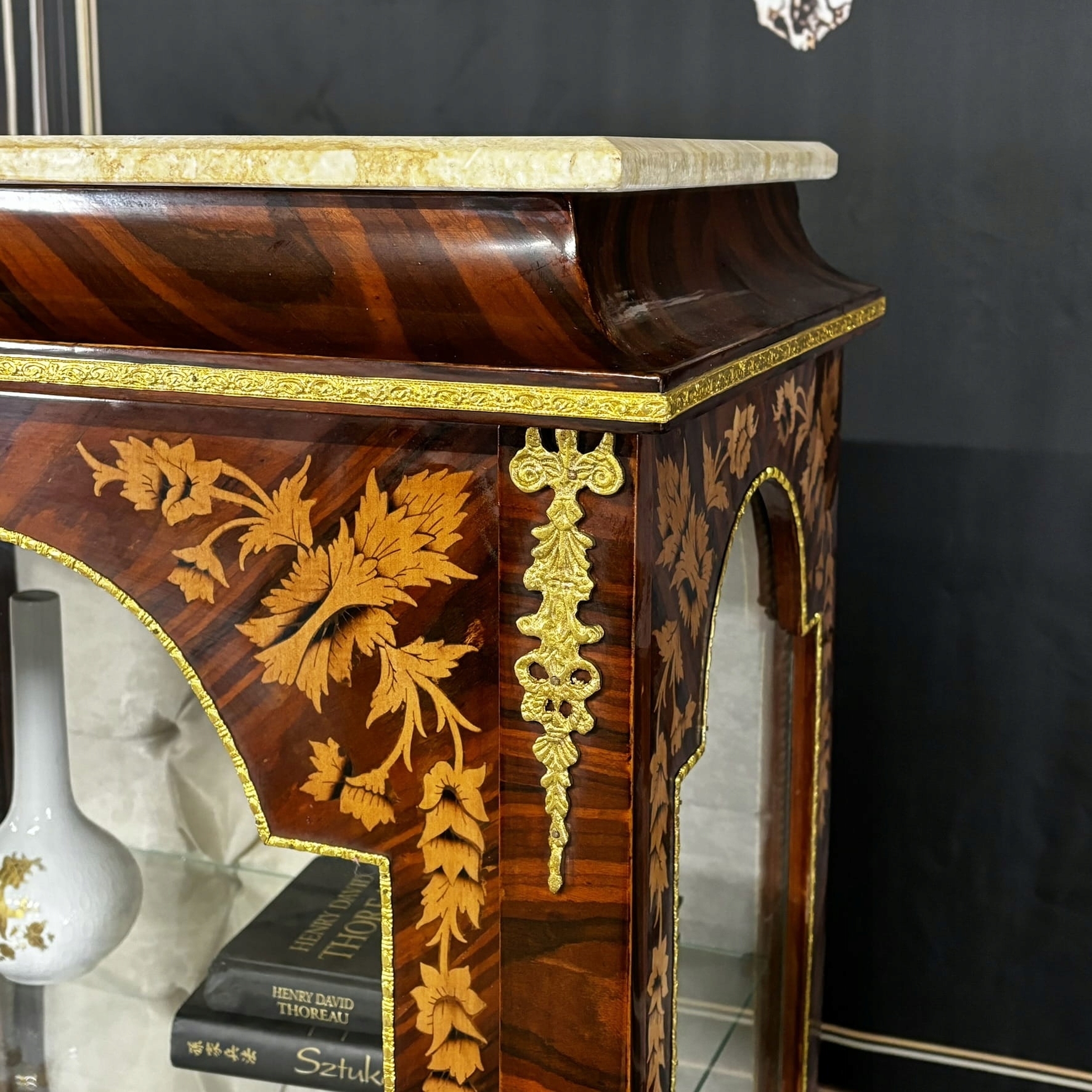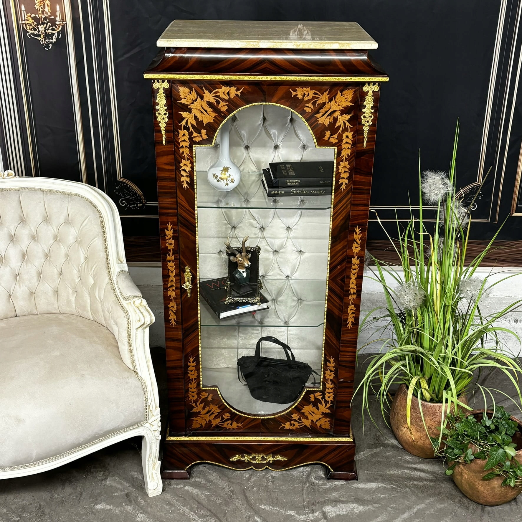 <ул>Это уникальный сайт в классическом стиле, сочетающий в себе элегантность и функциональность. Изготовленный из темного дерева, украшенный замысловатой маркетри и золотом, он станет отличным выбором для людей, ищущих роскошную мебель. Стеклянные дверцы и полки позволяют красиво демонстрировать фарфор, стекло, коллекции или украшения.