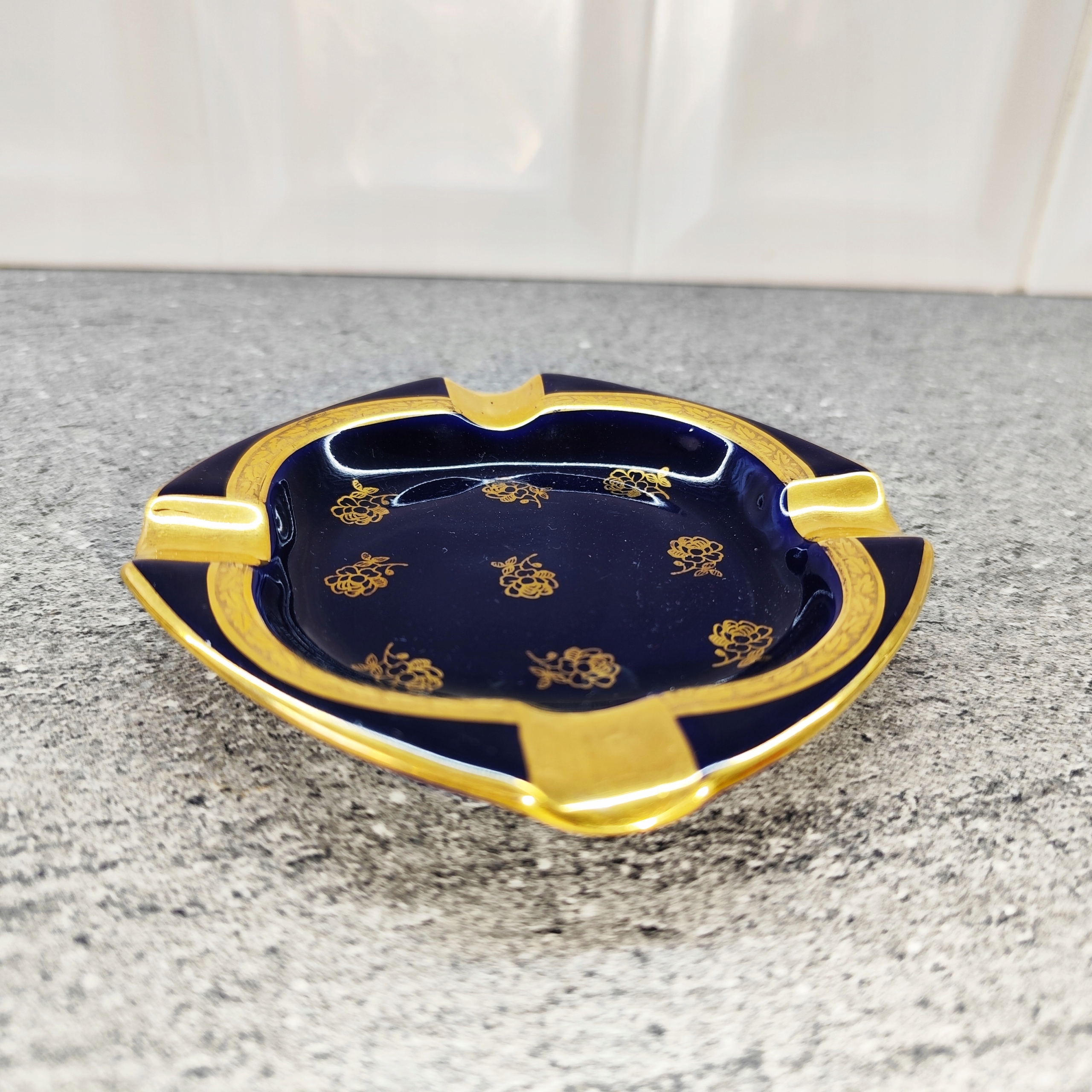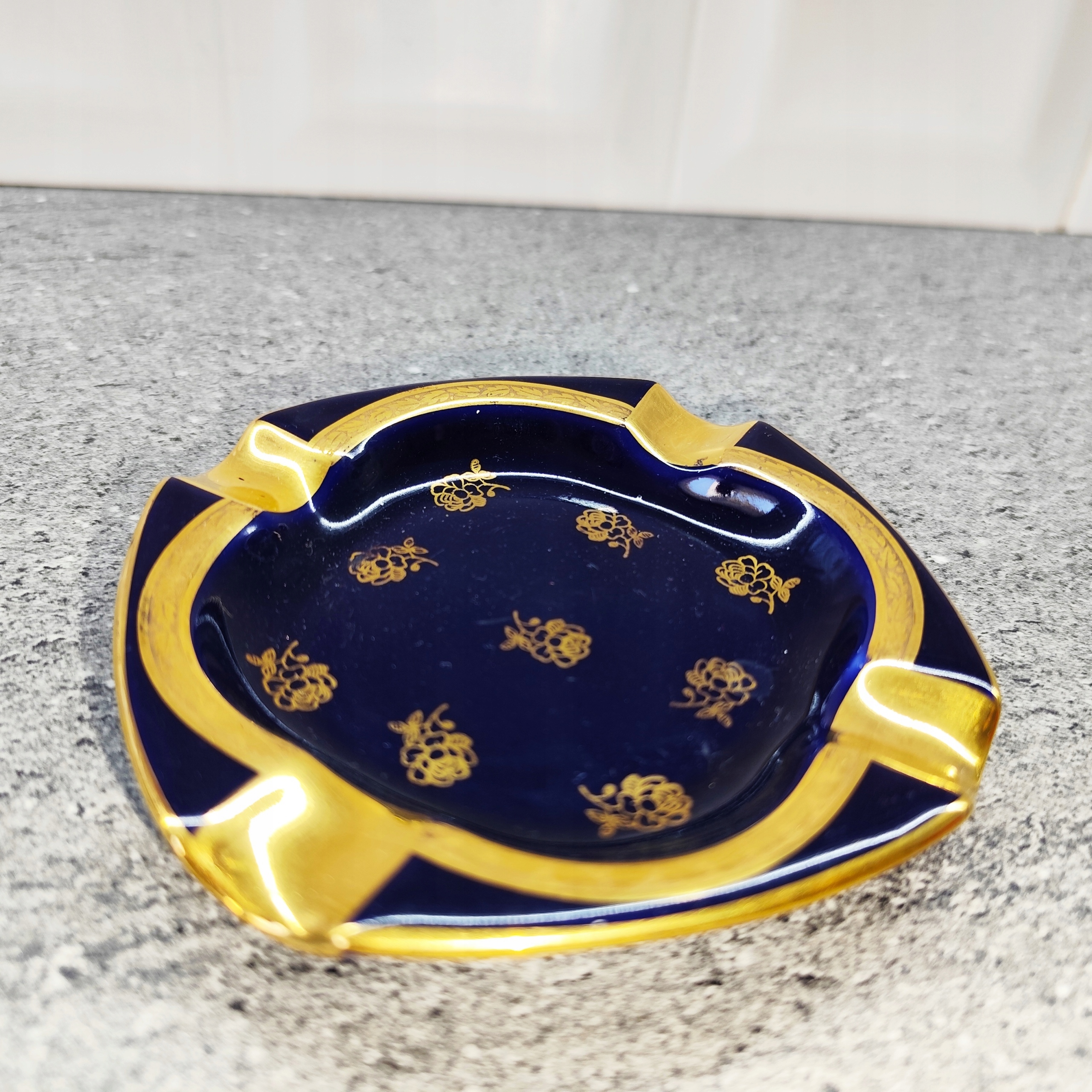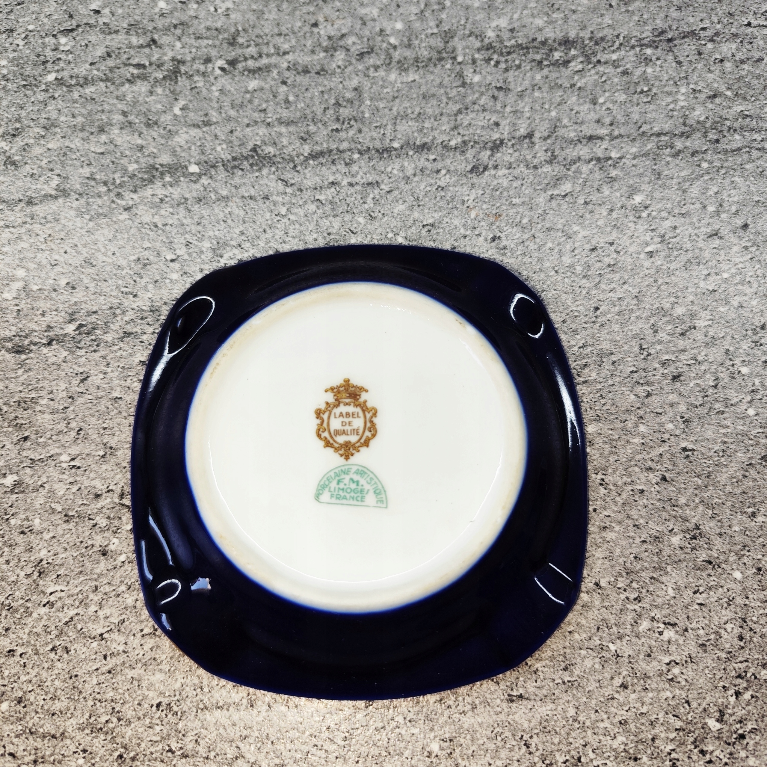 Маленькая кобальтовая фарфоровая пепельница из лиможского фарфора.