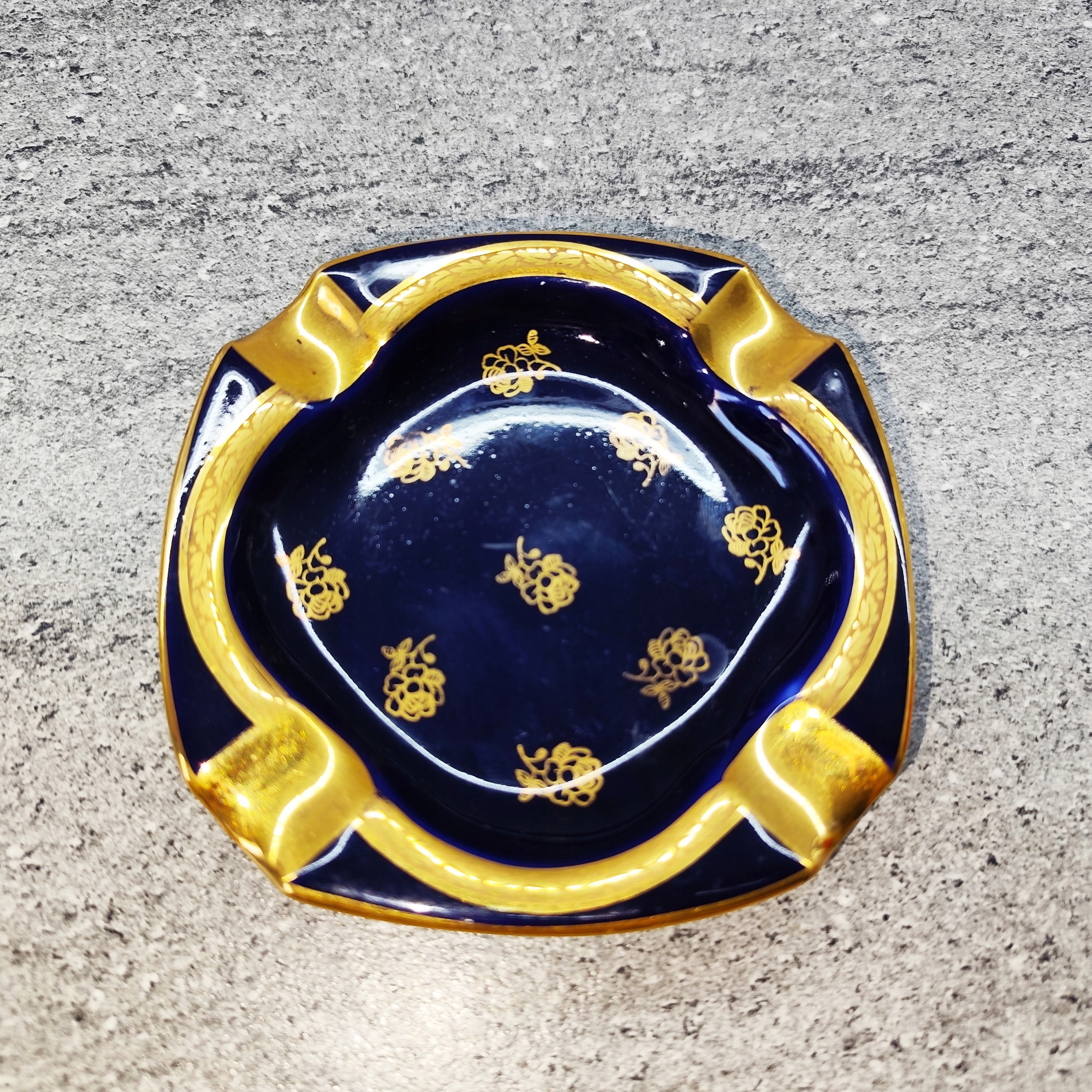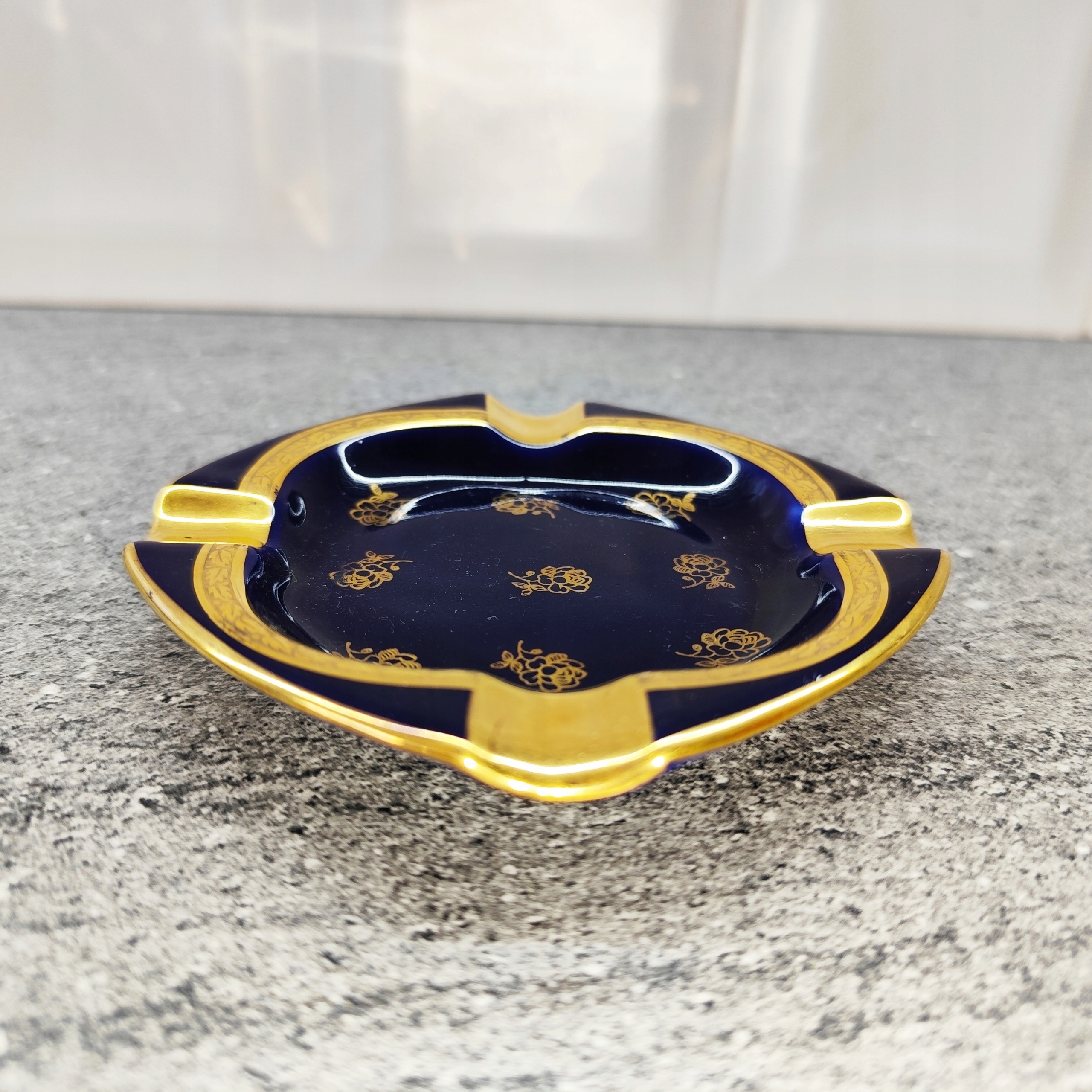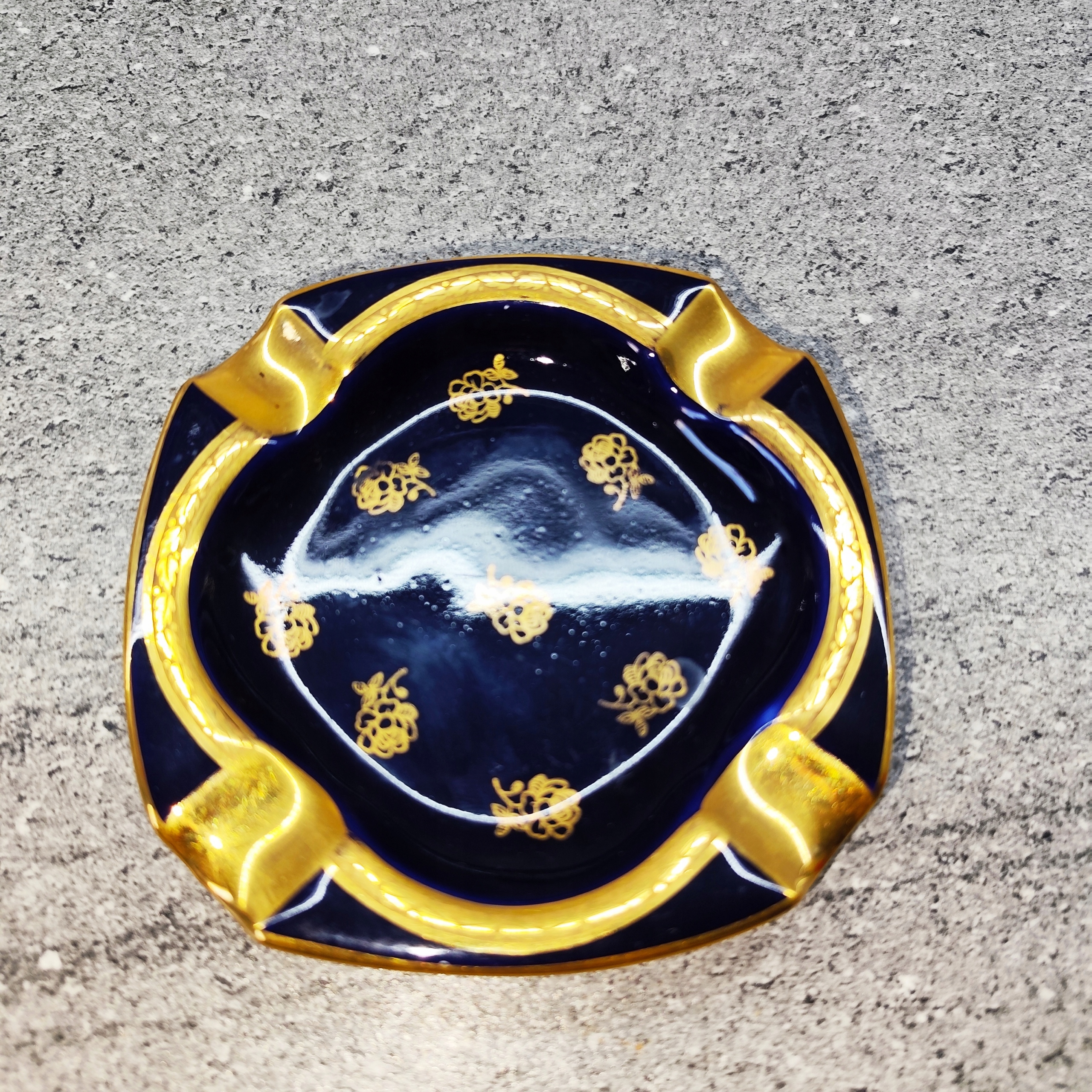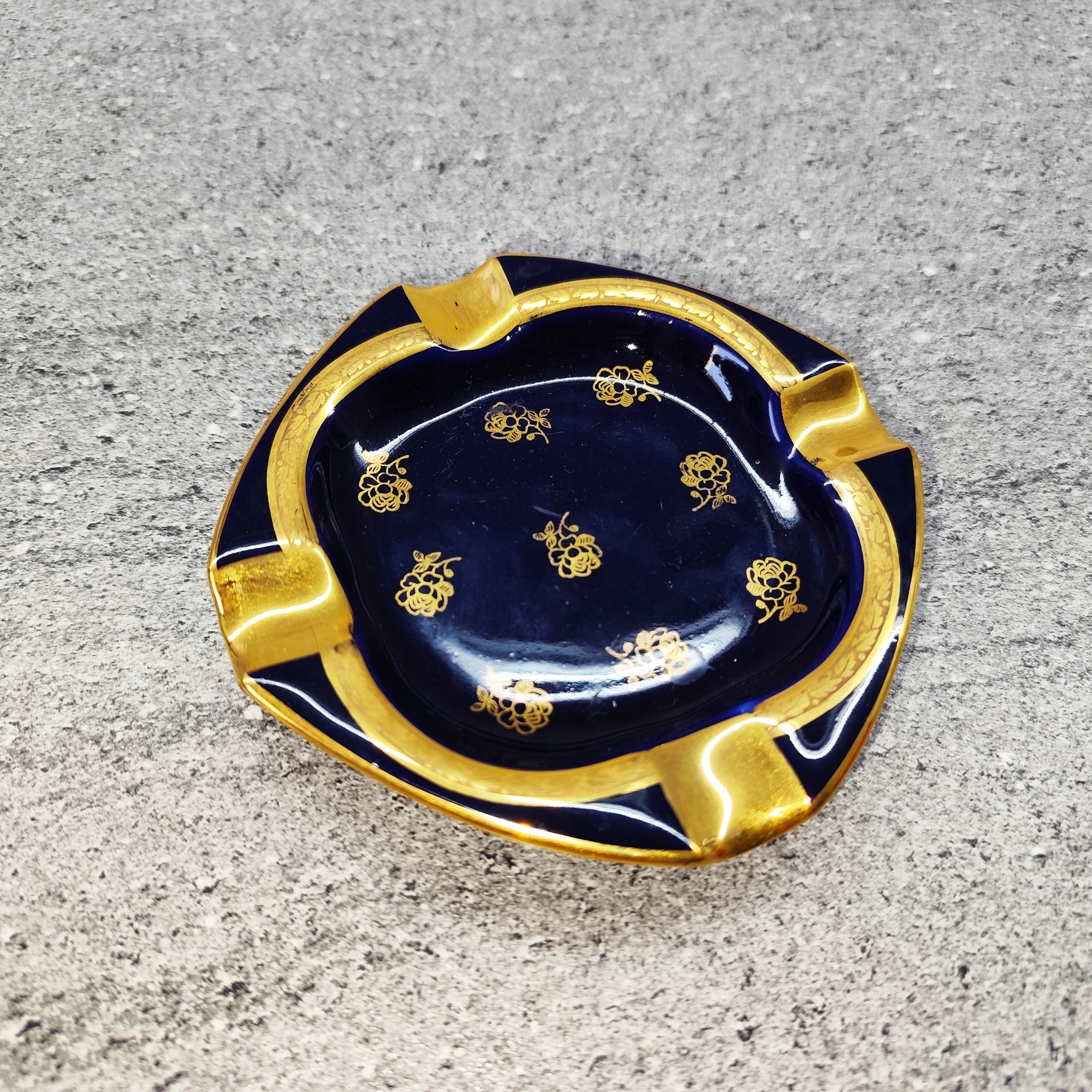Маленькая кобальтовая фарфоровая пепельница из лиможского фарфора.
