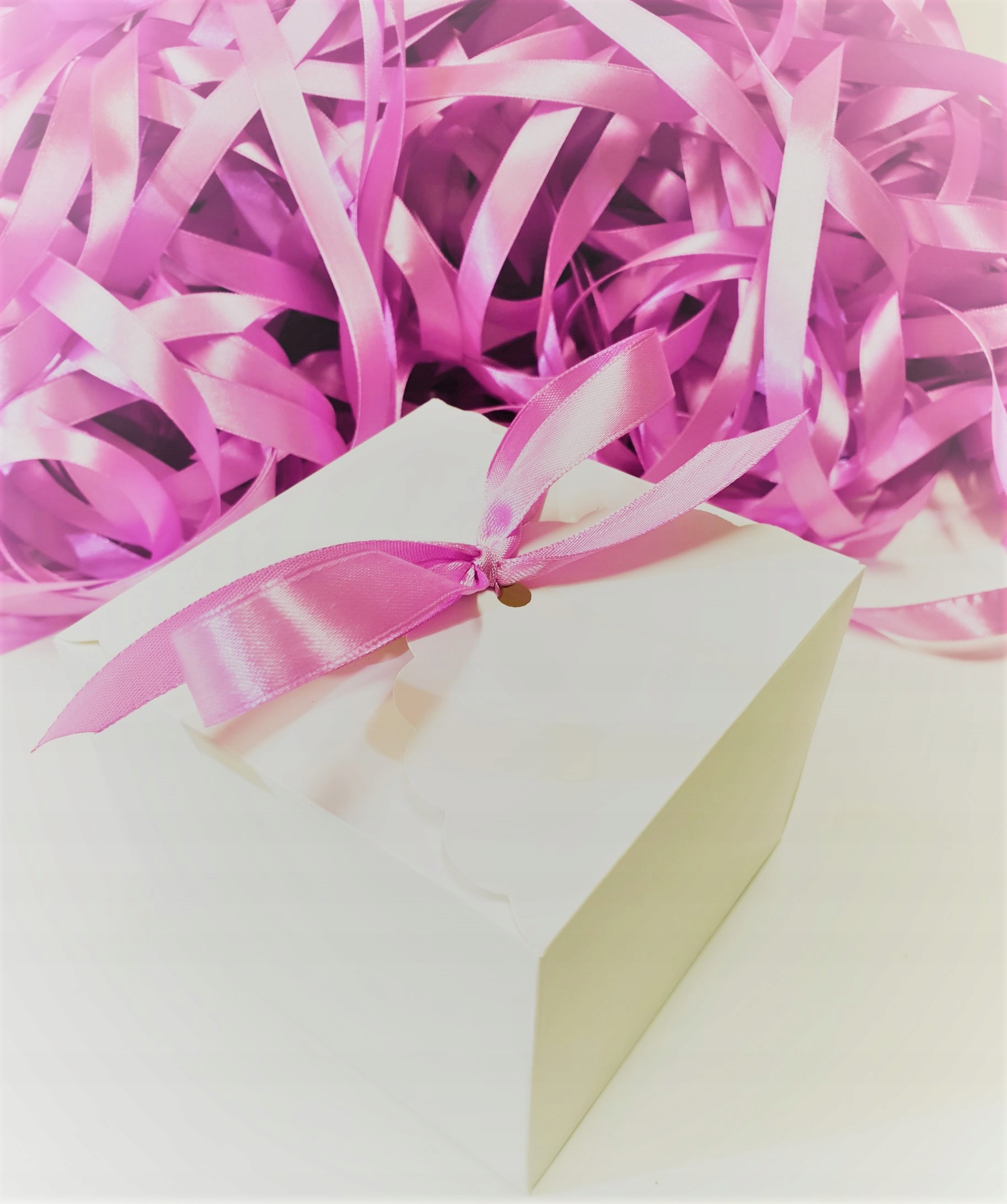 Коробка закрыта, связывая верхнюю часть с атласной лентой в выбранных цветах, выбранных из предлагаемых цветов или джутовой струны. Это дает отличный визуальный эффект!