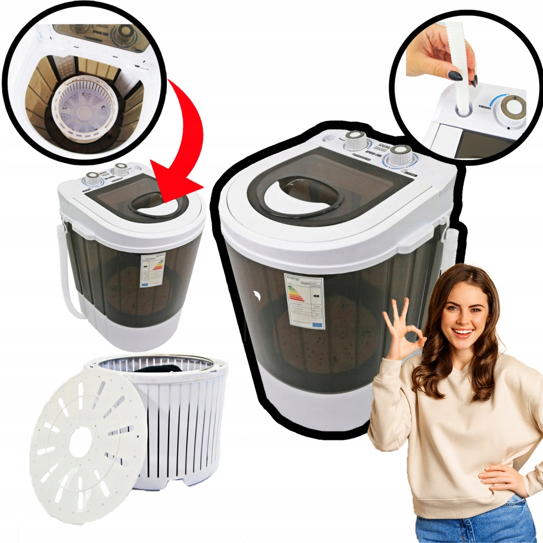 МАЛЕНЬКА МІНІ ДОМАШНЯ ТУРИСТИЧНА ПРАЛЬНА МАШИНА 4КГ ЧОРНА ПОРТАТИВНА НА ДІЛЯНКУ