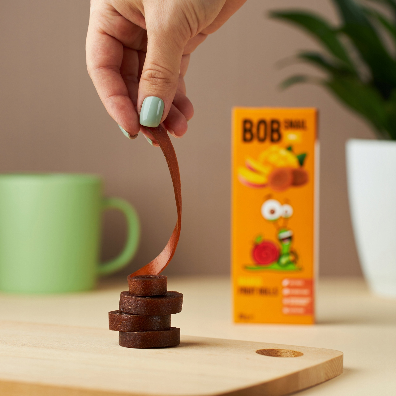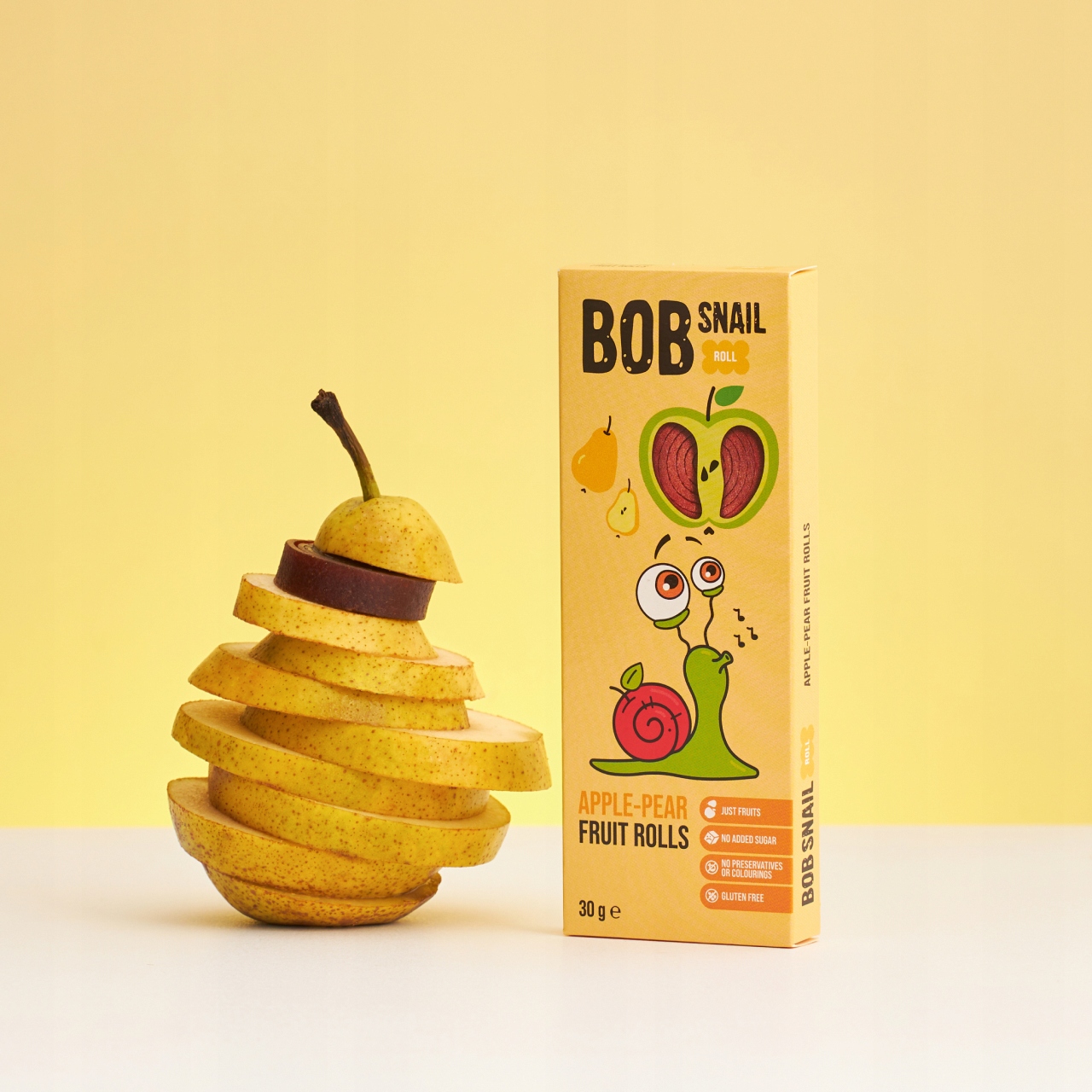 Привет, это Улитка Боб — лучший друг взрослых и детей. Я мечтаю, чтобы все вокруг меня были здоровыми и счастливыми, поэтому я производю полезные фруктовые снеки без добавления сахара, консервантов, глютена, ГМО и красителей.