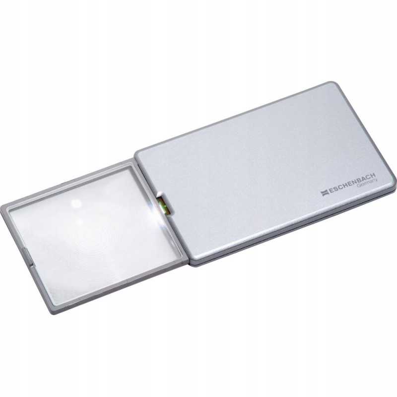 Профессиональная небольшая складная лупа немецкой компании Eschenbach. Увеличение и освещение размером с кредитную карту. Дефракционная асферическая линза. Освещение благодаря очень плоской лампе SMD-LED.