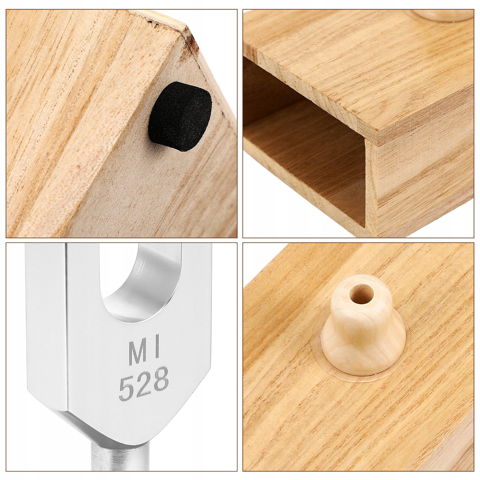 ✅ Задняя часть туннелей содержит точно настроенный алюминиевый сплав, деревянную резонансную трансмиссию и соответствующий молоток. Структура алюминиевого сплава гарантирует долговечность и точность звука, в то время как резонансная коробка укрепляет звук, обеспечивая лучшую слышенность. Прикрепленный молоток предназначен для того, чтобы ударить вилку с оптимальной силой.
