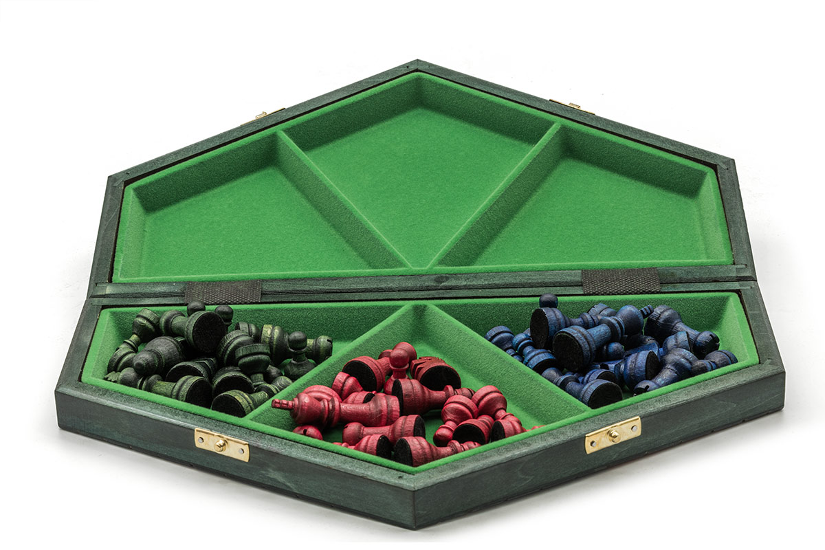 Маленькі триколірні шахи на трьох гравців/ Chess set for three players