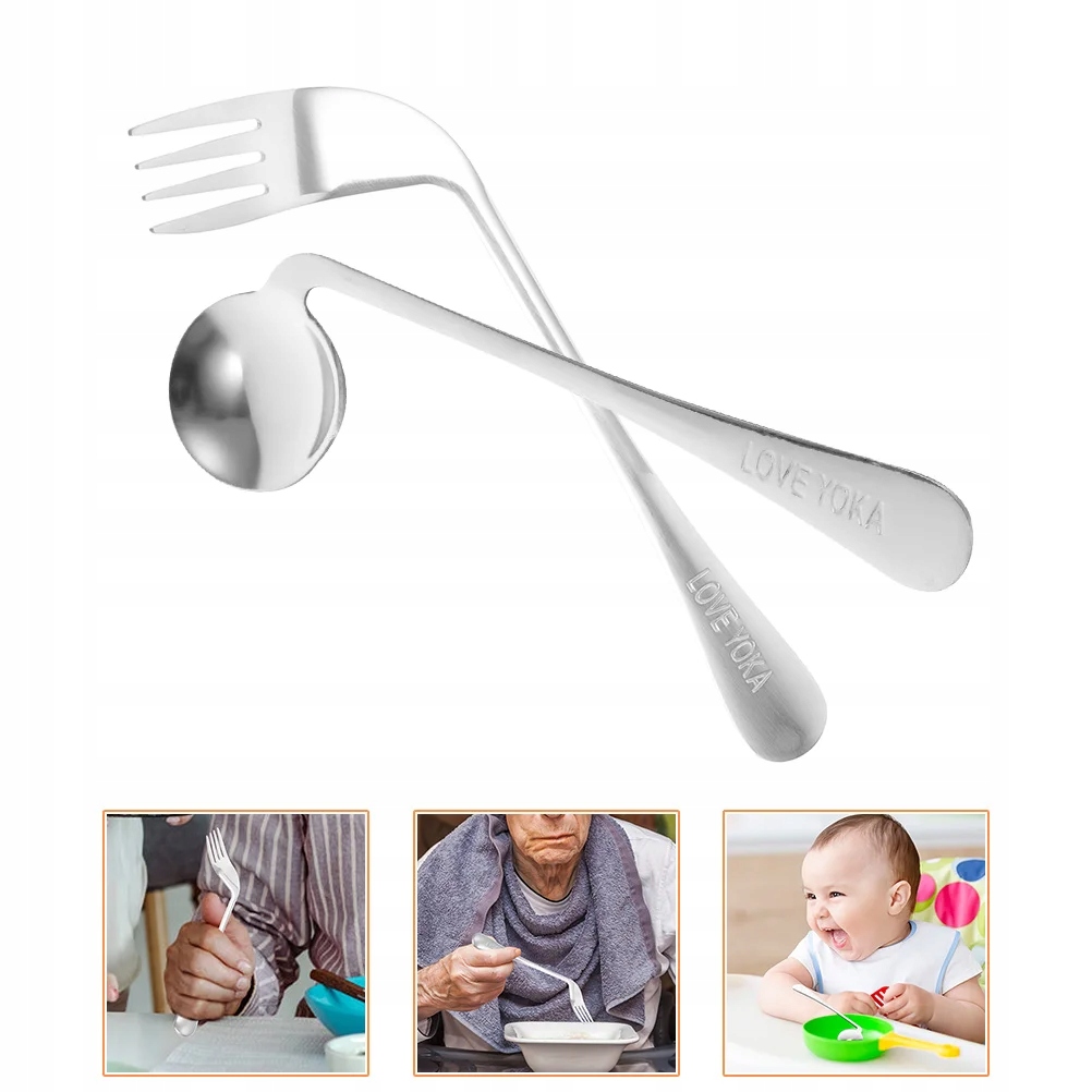 Наклонные вилка и ложка уменьшают нагрузку на запястья и облегчают работу людям с ограниченной подвижностью верхней части тела. Некоторым пожилым людям это также может оказаться полезным.