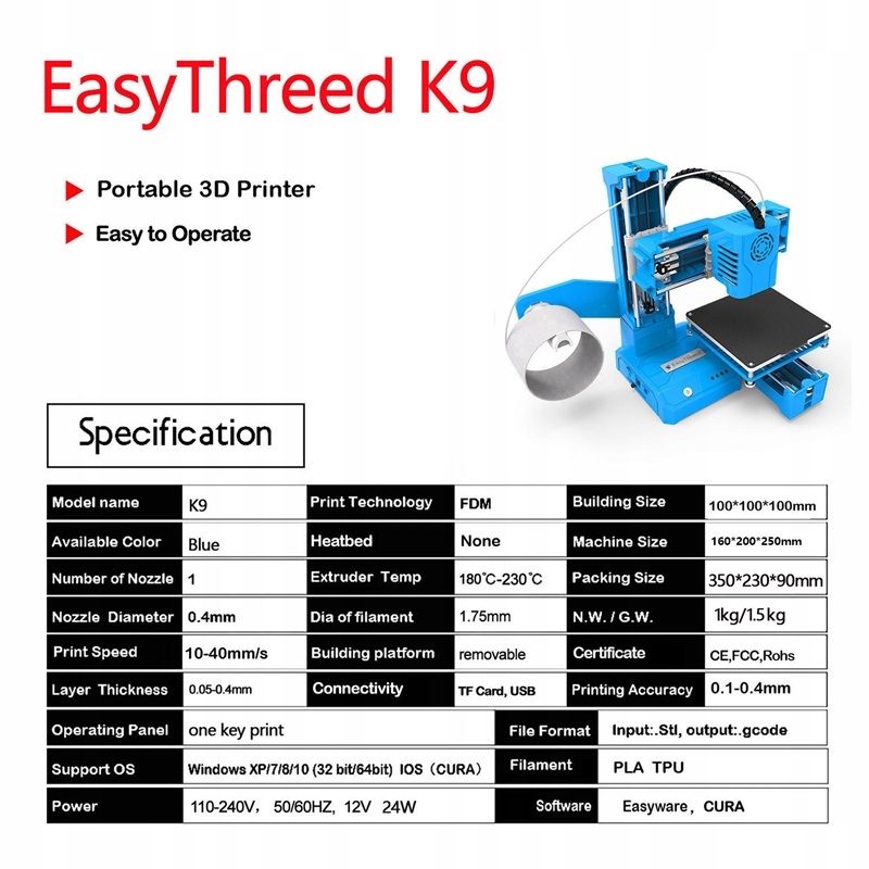 3D-принтер потребительского уровня. Он поставляется с собственным программным обеспечением для нарезки (Easyware), которое специально создано и имеет уникальную функцию автоматической нарезки.