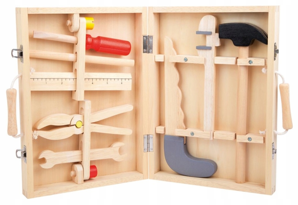 Деревянный набор с инструментами от известного производителя игрушек Small Foot Degisn — идеальный набор для самых маленьких любителей DIY. Просто бери чемодан и уходи. При таком ассортименте любые дефекты или мелкий ремонт не станут проблемой :)