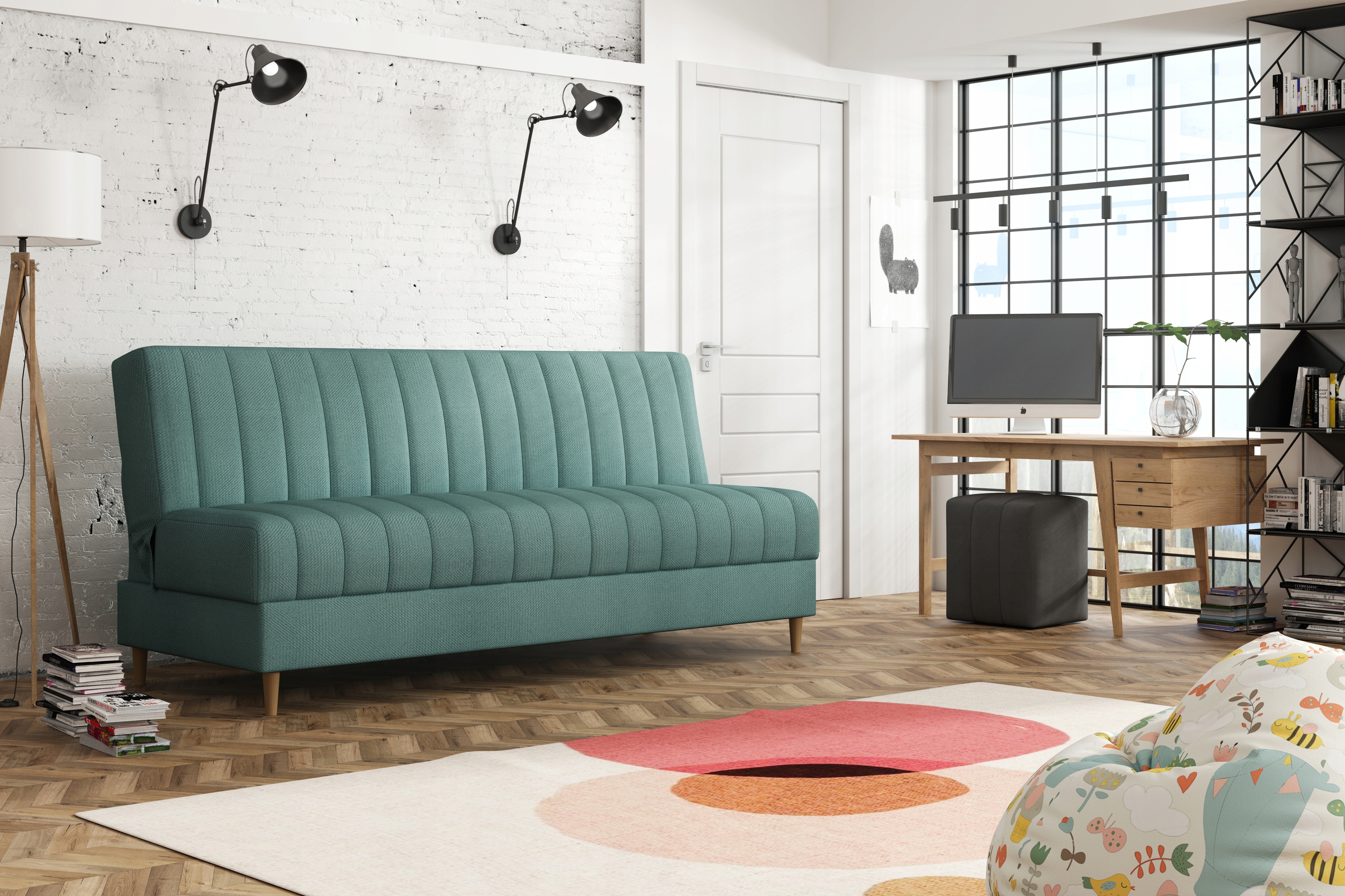OLA MINI — небольшой раскладной диван-кровать в скандинавском стиле. Велюровая ткань и декоративная строчка придают дивану шик и элегантность. Диван оснащен контейнером для постельного белья. OLA подойдет как для комнаты подростка, так и для детской.