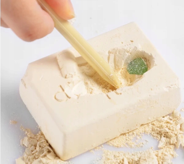 ✳️ Забавно выкапывать драгоценные камни из гипсового блока, что требует терпения и точности.