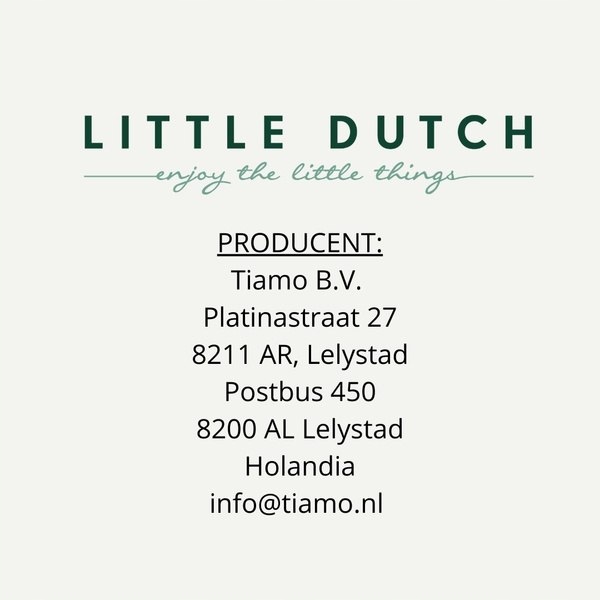 Little Dutch — голландская семейная компания, которой управляет супружеская пара, которая всей душой вкладывает силы в создание товаров для детей. В предложении бренда представлен высококачественный текстиль из органического хлопка с сертификатом Oeko-tex, такой как полотенца, спальные мешки, пеленки, аксессуары для детских комнат и сенсорные игрушки для малышей, а также игрушки и транспорт из дерева. Для продукции Little Dutch характерны спокойные пастельные тона.
