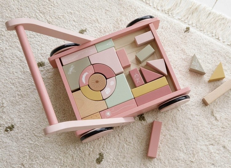 - Коляска-толкач с кубиками Little Dutch из коллекции Flowers розового цвета.