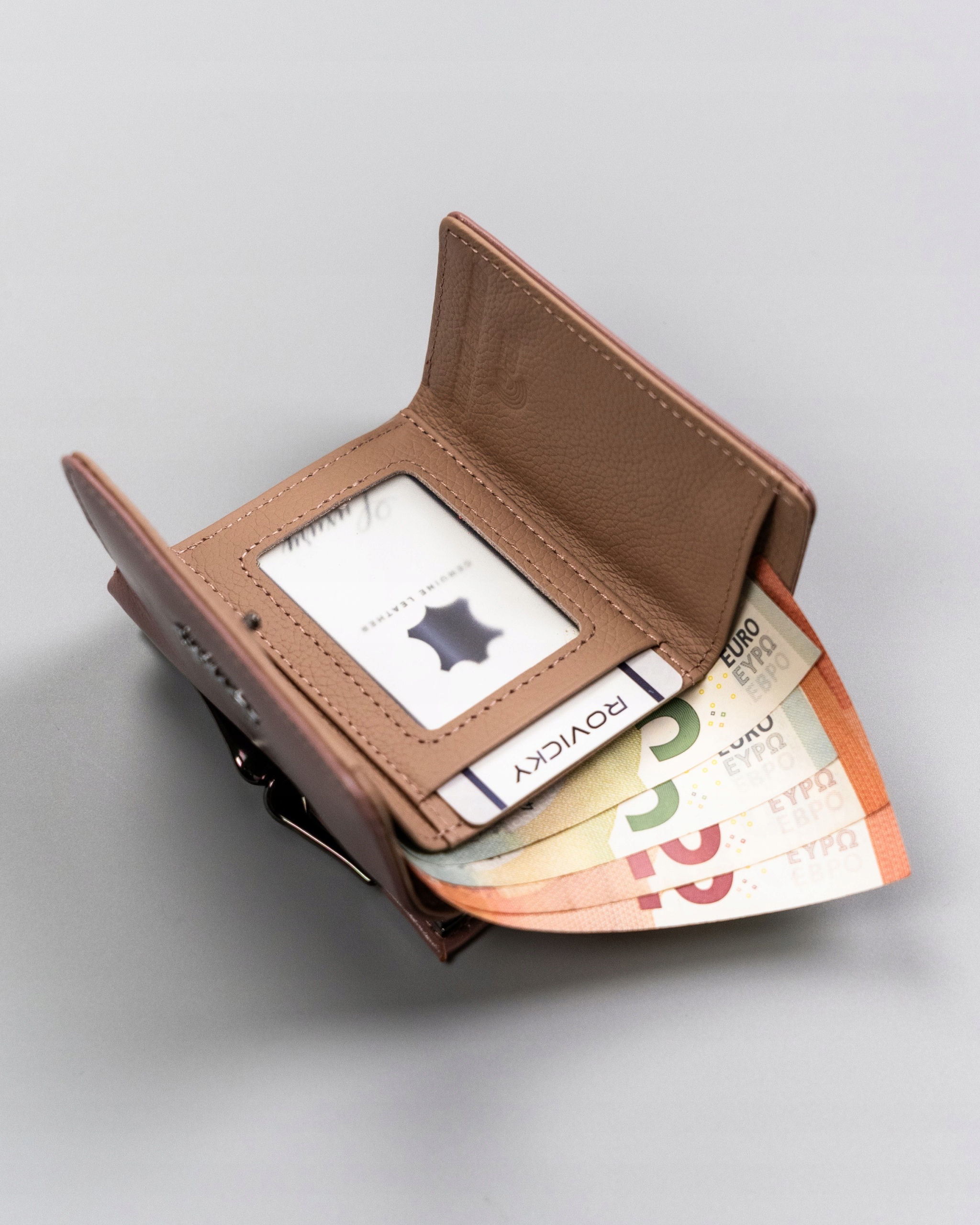 Кошелек имеет очень минималистичный дизайн. Несмотря на небольшой размер, в него можно поместить самые необходимые вещи.
